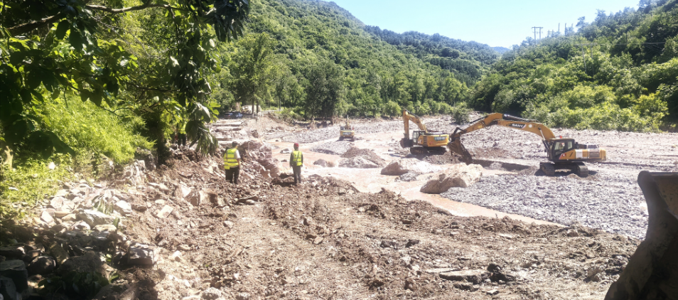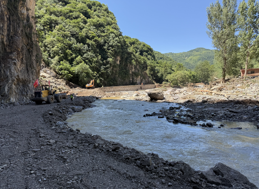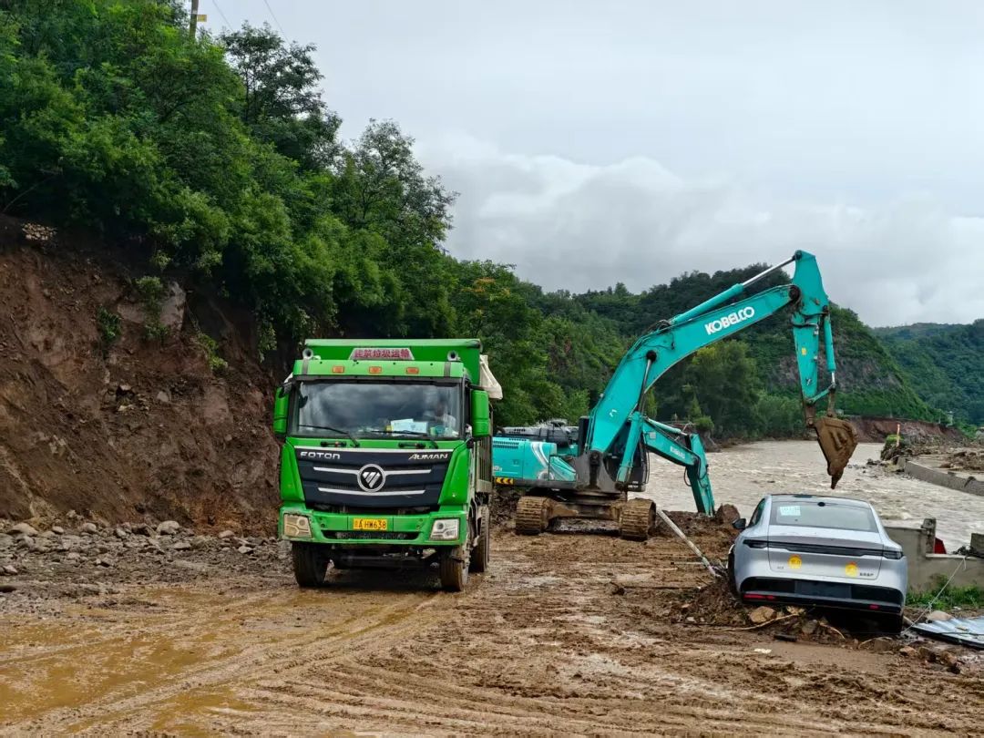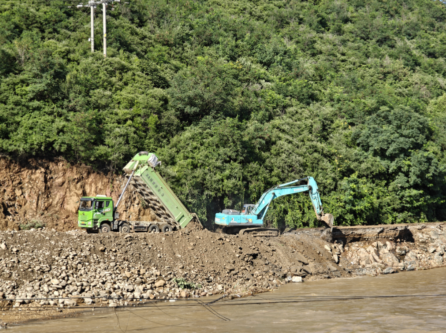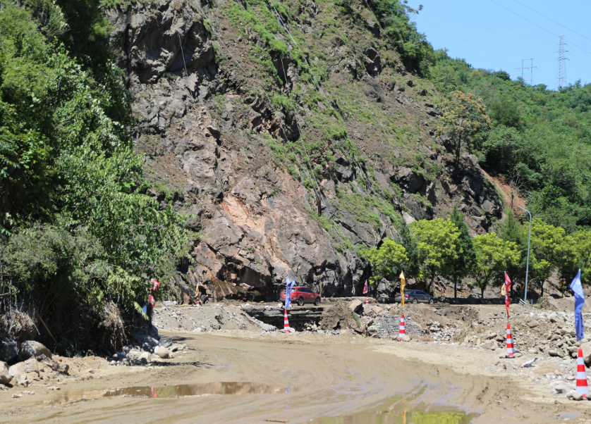 在抢修国G234的过程中,抢险人员们面临着诸多困难和挑战,临水临崖路段多,水毁断点长,桥梁涵洞受损、路基边坡垮塌点位多,打通难度很大。施工队伍根据现场的实际情况动态调整施工方案,对于暂时不具备回填条件的路基段落,临时借用河道回填成为路基,将一个个阻断点与现存道路重新“拼接”成一条应急救援的“生命线”。抢险队伍齐心协力,克服通讯中断、餐饮无规律、作息没保障等诸多困难,每日奋战20小时,用最快速度抢出了生命救援通道。同时,抢通队伍还主动向沿线周边乡村公路延伸作业,全力帮助受困村庄打通救援通道。7月30日午夜,国道G234兴阳线所有断点全部抢通。