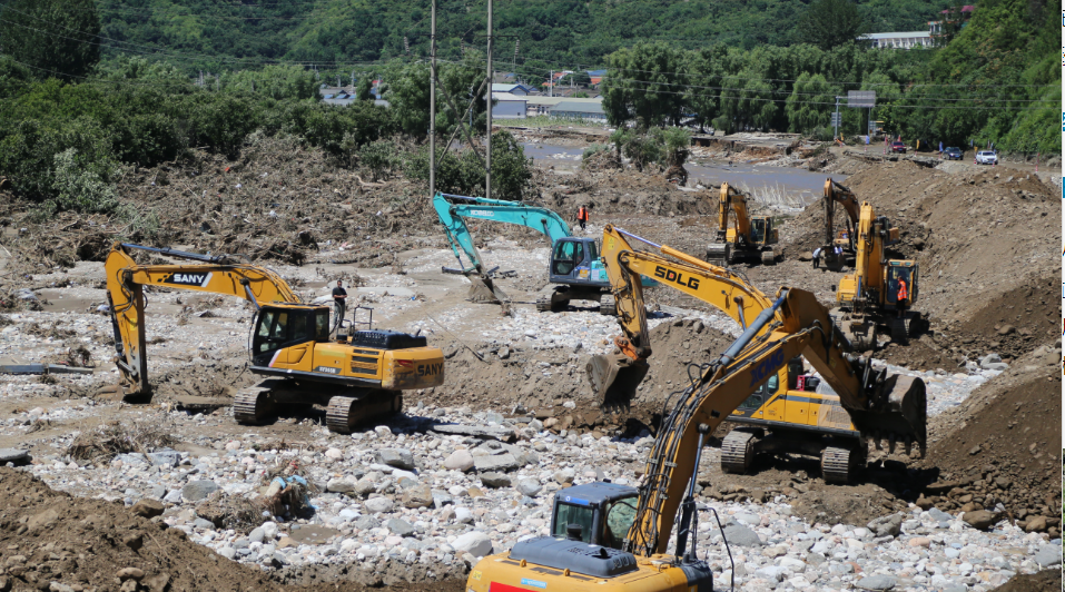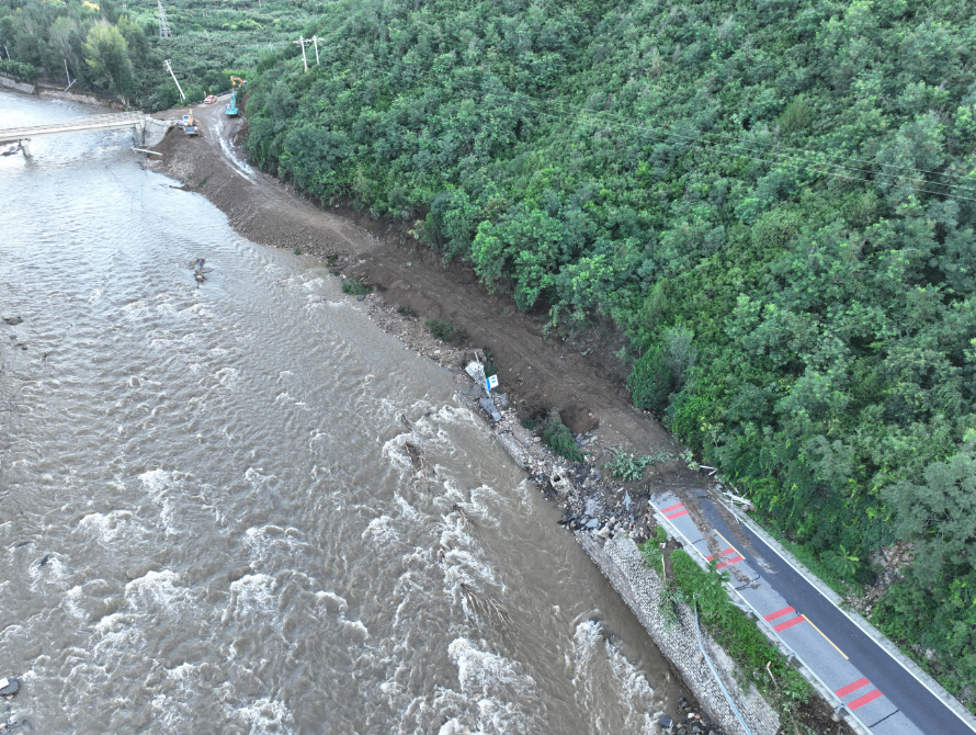 其中,延庆段已于7月28日实现抢通,抢修车辆、物资运输车辆可以通行。道路抢通后,抢险队伍继续向怀柔段挺进。怀柔段全长约42.853公里,为三级公路,是东峪村、老公营村等沿线多个村庄村民出行的唯一主干道,此次水毁长度约7公里,灾毁形式多样,包括路基边坡垮塌、挡墙冲毁、桥梁涵洞受损等。密云段则从大城子镇北沟村东市界入境,向北经大城子、北庄、太师屯等地,至辛庄路口转向西,途经高岭、不老屯、冯家峪、石城镇,终点至大龙门西怀柔区界出境,全长97.74公里,过境段共有桥梁33座、隧道8座;其灾毁形式主要包括整幅或半幅道路冲毁、桥梁及涵洞冲毁、路基路面损坏、排水设施损毁、路基边坡垮塌、沿河路基防护水毁等。