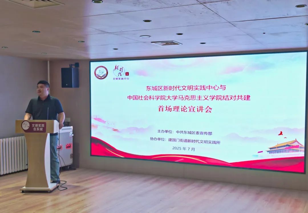 近日,东城区新时代文明实践中心携手中国社会科学院大学马克思主义学院在建国门街道新时代文明实践所举办首场结对共建理论宣讲会。