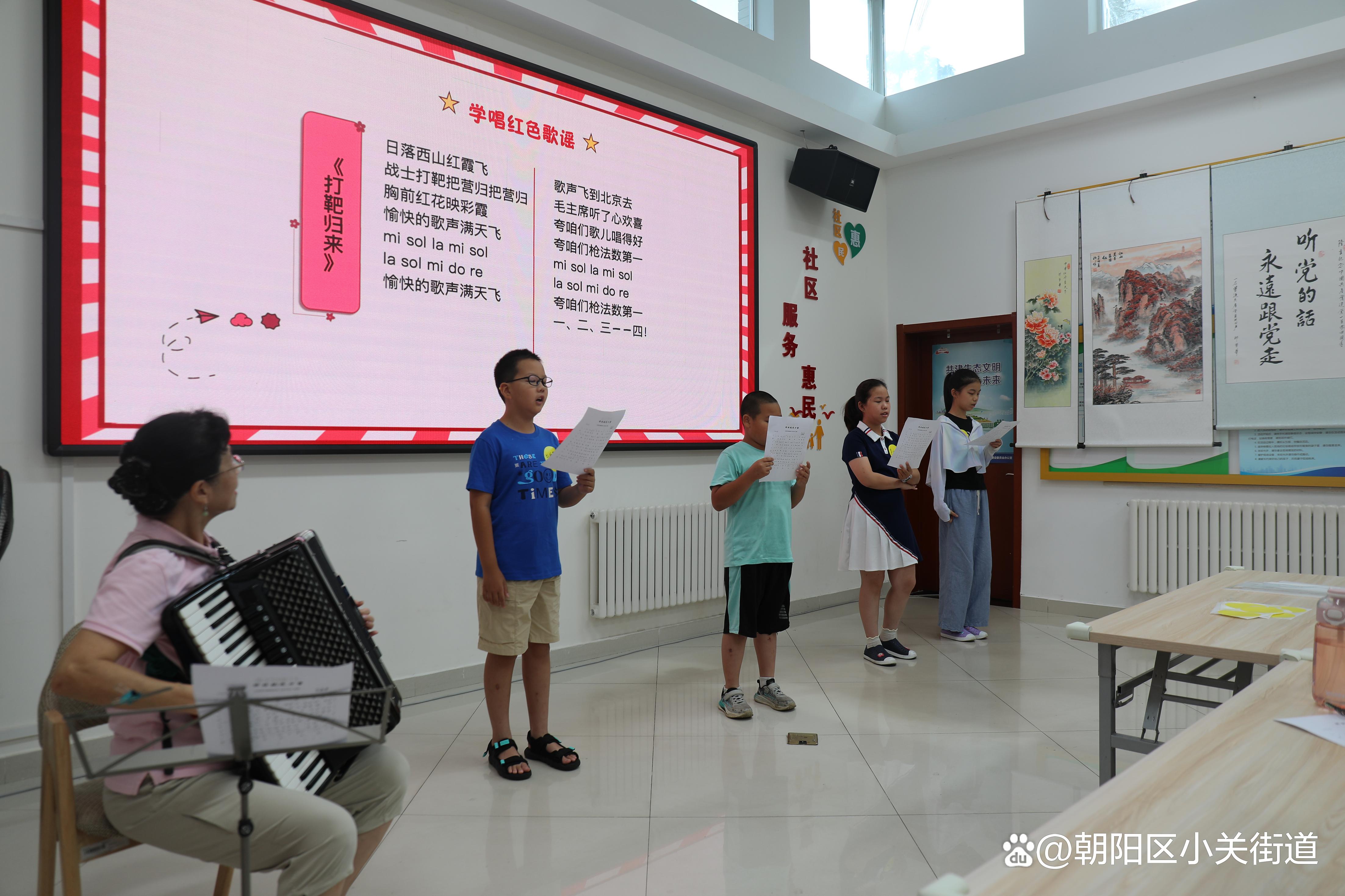 “日落西山红霞飞,战士打靶把营归……”悠扬的手风琴声响起,熟悉的旋律在活动室回荡。在翟莉老师的带领下,孩子们挺直腰板,用稚嫩却无比坚定的声音,齐声学唱《打靶归来》《团结就是力量》等经典军旅歌曲。