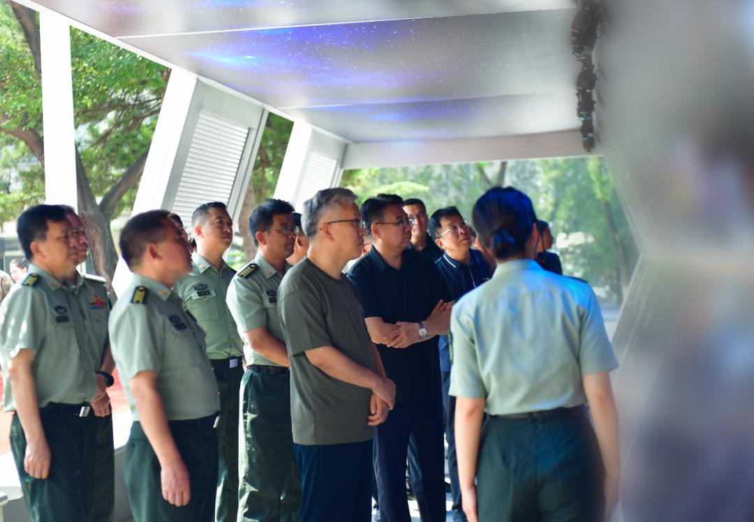 区领导一行参观了部队设备展示,深入了解部队在通信保障等方面的能力建设成果。