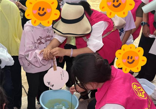 活动伊始,巾帼志愿者代表宣读倡议书,呼吁更多妇女群众加入巾帼志愿者队伍,关心关爱留守、困境儿童成长。现场,孩子们收到了装有文具、书包等学习用品的“爱心礼包”。互动体验环节,巾帼志愿者与孩子们共同制作传统漆扇,五彩颜料在水中晕染,雪白扇面渐次呈现出独特纹样。书签制作区域,小朋友们兴致勃勃,互相展示创意作品,另一边,参与互动游戏的孩子们也玩得不亦乐乎,场内欢声不断,气氛温馨热烈。