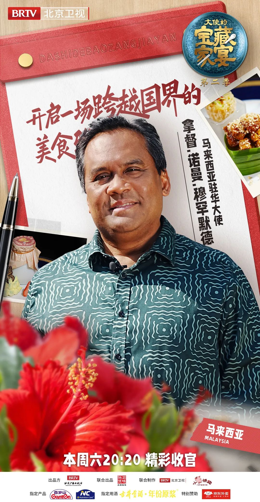 《大使的宝藏家宴》第二季的最后一站,满载着东南亚的风情与中国和马来西亚情谊的醇厚,在马来西亚驻华大使馆盛大启幕。今晚,由北京广播电视台出品,正杨映像联合出品,北京卫视、小猪快跑工作室联合制作,指定产品百岁山、Nutrition Care,指定用酒古井贡酒·年份原浆,京东外卖特别赞助播出的中外美食文化交流真人纪实节目《大使的宝藏家宴》播出第八期,宝藏主理团携手新成员瞿颖,踏上这场充满惊喜与感动的文化寻味之旅,以美食为媒,叩响马来西亚的宝库大门,在榴香舞韵中共绘山海相连的友谊长卷。
