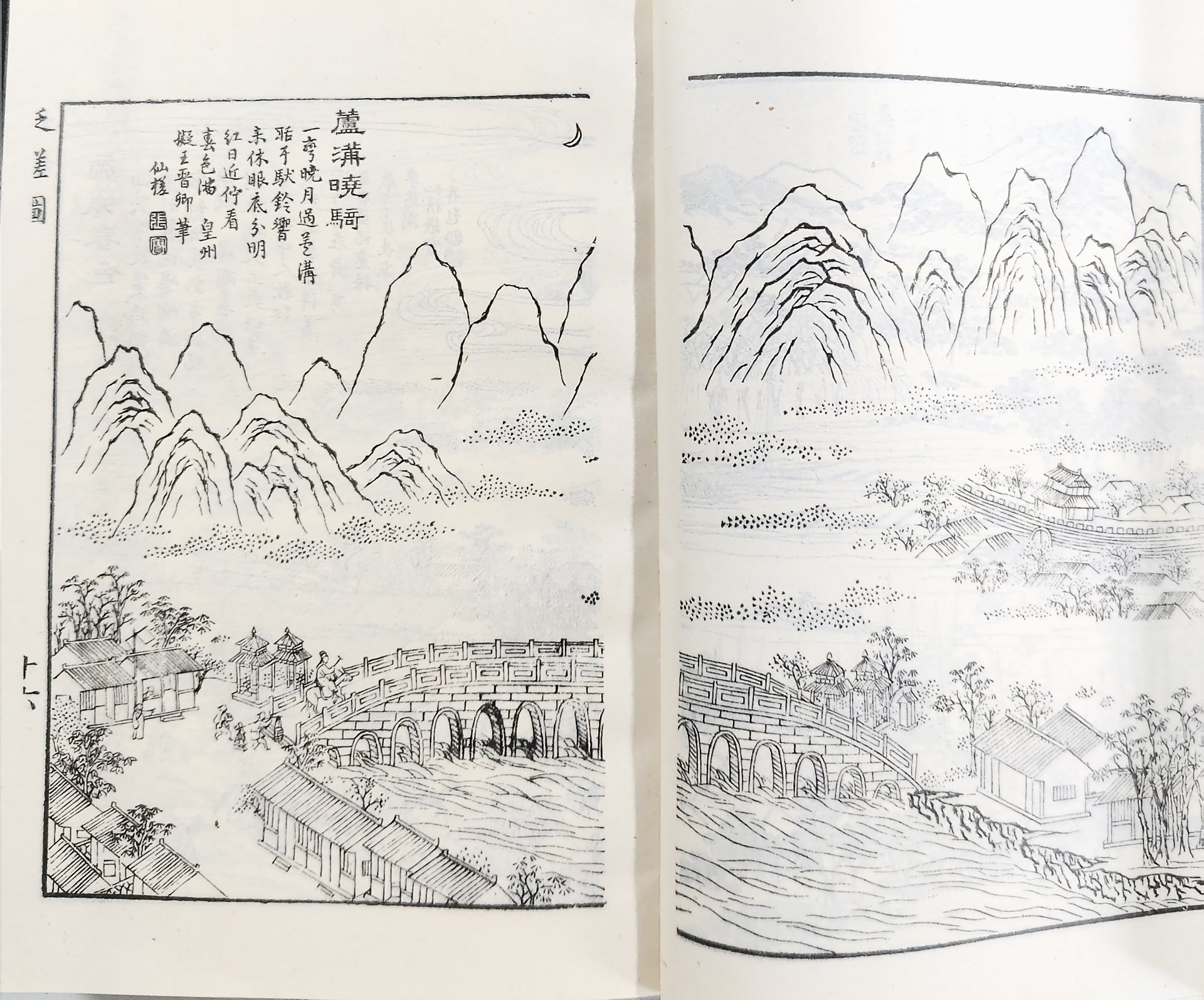 《泛槎图》六集,除了有从嘉庆到道光年间陆续刻成的木版原刊本以外,还有光绪六年上海点石斋缩印的石印本。石印本缩得很小,仅及原书开本的四分之一,而且还省略了若干题辞和序。原刊本现在已经不容易买,石印本还不难遇到。点石斋的石印本印于光绪六年,有一篇跋,说明原刊本在那时已经不易得。石印本的跋云:“《泛槎图》一书,系白门张仙槎先生遨游天下之作,凡名山大川,辄绘以图,题以诗,凿险缒幽,雕章琢句,虽古之图灵光,铭剑壁者不过是焉。图凡百有三,状烟云之变态,备海岳之奇观。抑且王公巨卿,题咏殆遍,真诗中有画,画中有诗也。惜枣梨已失,几有广陵散之憾矣。本斋广为搜罗,得原本六集,以泰西照相石印之法,缩成袖珍,合订四册,移繁就简,以大易小,而于笔意之全神,仍不爽丝毫之末。公诸于世,不独卧游者取携甚便,而大著亦足与河山并寿矣。爰赘数语,以志其成云。光绪六年秋八月,点石斋主人敬跋。”