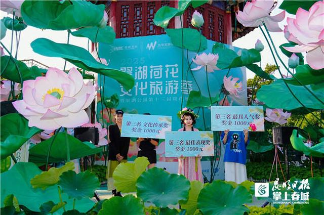 掌上春城讯8月2日,为期15天的第十三届翠湖荷花展荷花仙子大赛颁奖典礼在昆明翠湖公园莲花禅院圆满落下帷幕。经过激烈角逐,18号选手梦月凭借出众的才艺与深厚的文化底蕴摘得桂冠,成为本届大赛的“荷花仙子”。本次活动以"荷香满翠湖·文旅共融合"为核心,吸引了全省数百名选手参与,通过汉服走秀、才艺展示、文化知识竞答等环节,展现了中国传统文化的独特魅力。