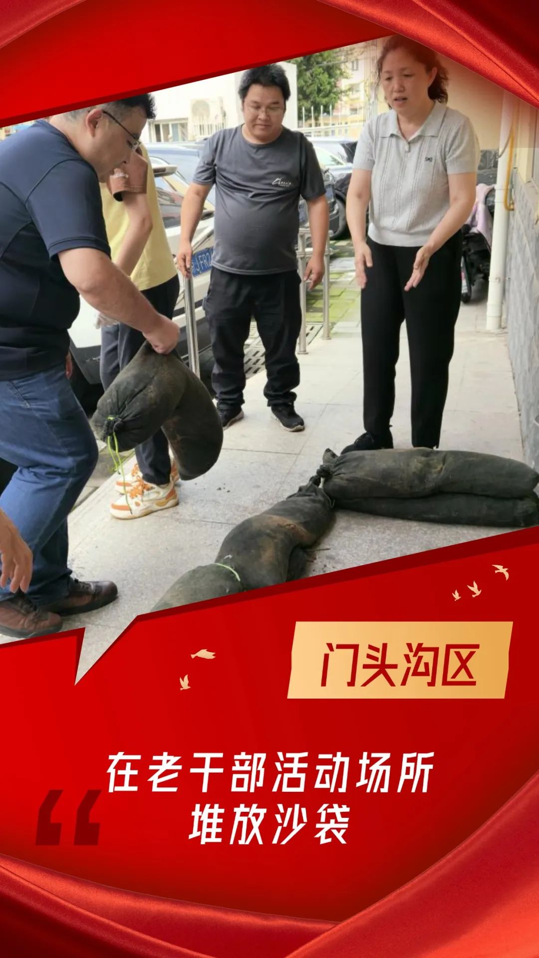 为做好防汛应急工作,门头沟区委老干部局第一时间组织工作人员,在老干部活动场所出入口及易积水区域堆放沙袋,切实保障场所设施安全及老同志的人身安全。