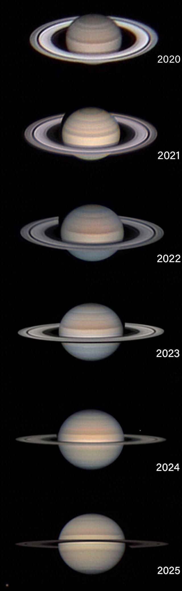 2020年至2025年,在广东省中山市三角镇拍摄的土星特写(拼版)。(汉玲 摄)