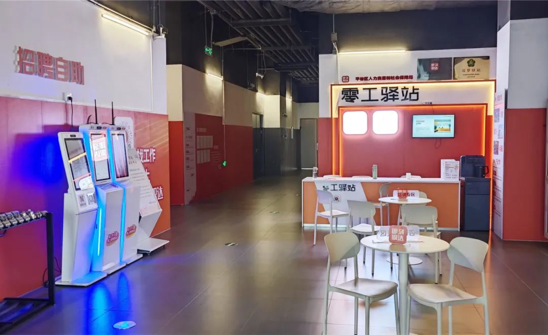 就业引力场。LG层的零工驿站即“就业引力场”,配备了自助服务器,动态更新岗位信息库,为群众提供岗位匹配、政策咨询等一站式服务,搭建起求职者和用人单位的对接平台,成为促进民生保障、增强群众归属感的“就业加油站”。