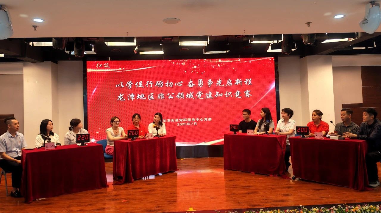 7月31日,龙潭街道党群服务中心党委举办红筑“以学促行砺初心 奋勇争先启新程”龙潭地区非公领域党建知识竞赛活动,辖区50名非公领域人员参加。
