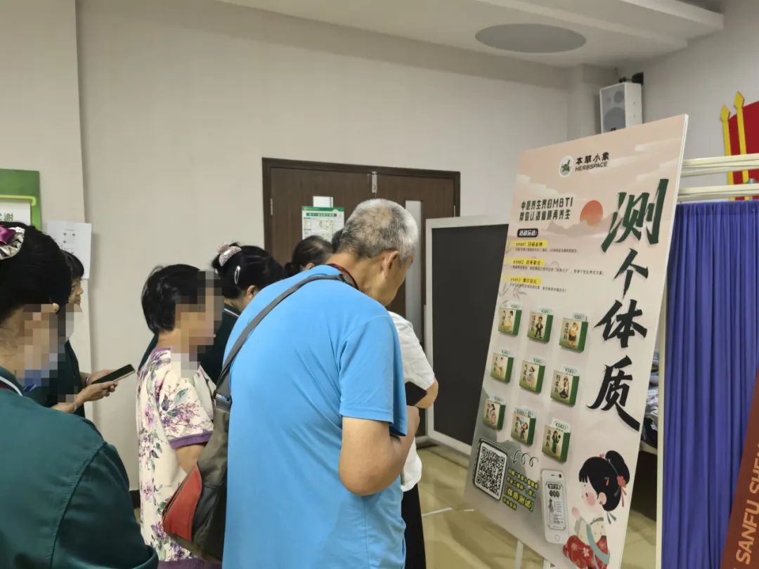 活动现场,居民通过“本草小象”公众号的服务平台,进行体质测评,通过回答相关问题,得到自己的体质分型。无论是容易上火的阴虚质、怕凉喜暖的阳虚质,还是爱长痘的湿热质,都能在现场得到一份专属养生方案——比如痰湿质居民推荐多吃山药、茯苓,气滞质居民建议常按太冲穴疏肝理气。一人一方的贴心指导,让大家明白“养生不能跟风,适合自己才最好”。