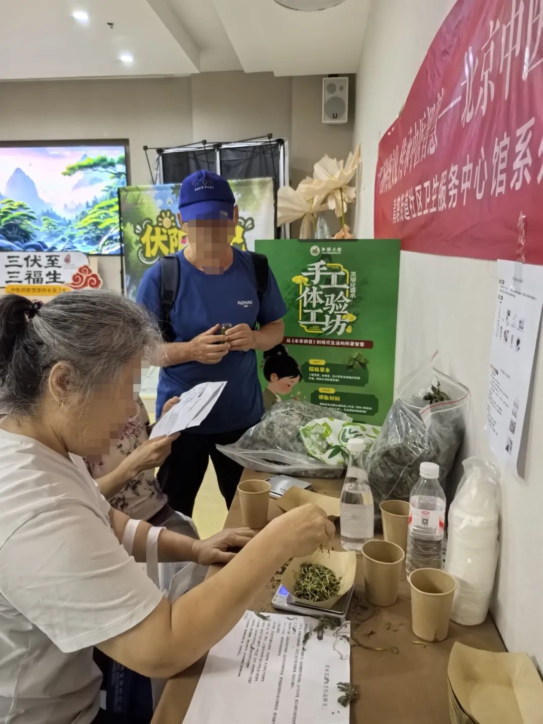 闷热三伏天,一杯清润茶饮最是解腻。现场准备的“清润伏湿茶”人气爆棚!由白茅根、白扁豆花、藿香、陈皮等中药饮片冲泡而成,清热不寒凉,祛湿不伤脾,特别适合夏天喝。