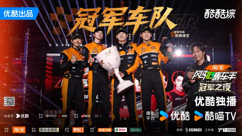 节目总决赛于7月31日在秦皇岛首钢赛车谷举办,通过长达8小时的“马拉松式直播盛宴”,打造了一场融合专业竞技、潮流文化与电商消费的沉浸式体验场。最终,由黄景瑜、韩东君、林一、江奇霖组成的吉刚缘空车队,通过艰辛的竞赛,荣获冠军!数据显示,决赛直播观看量超6573万,收获全网热搜超150个!