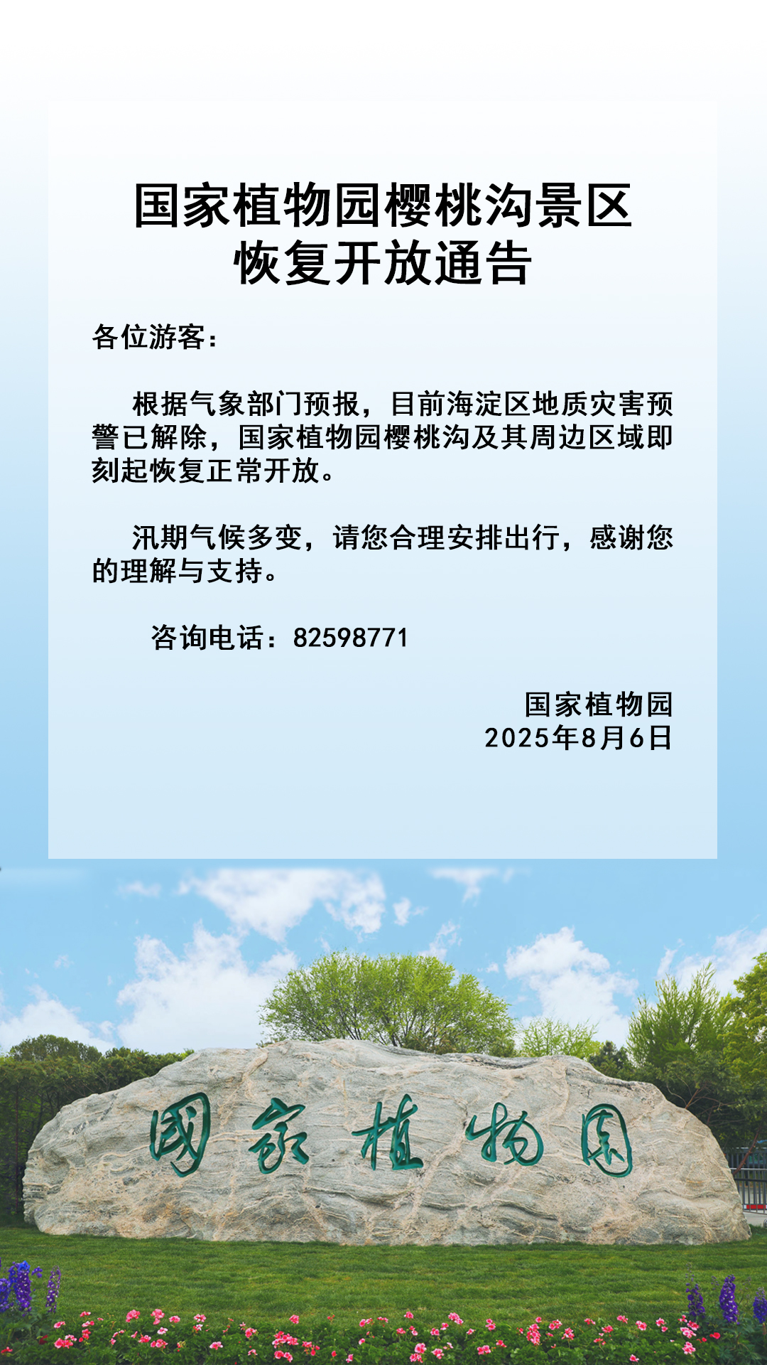 国家植物园樱桃沟景区恢复开放通告