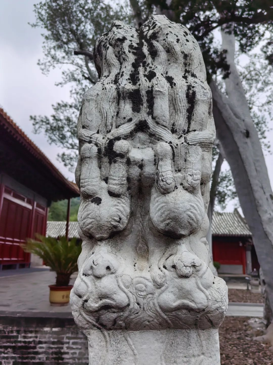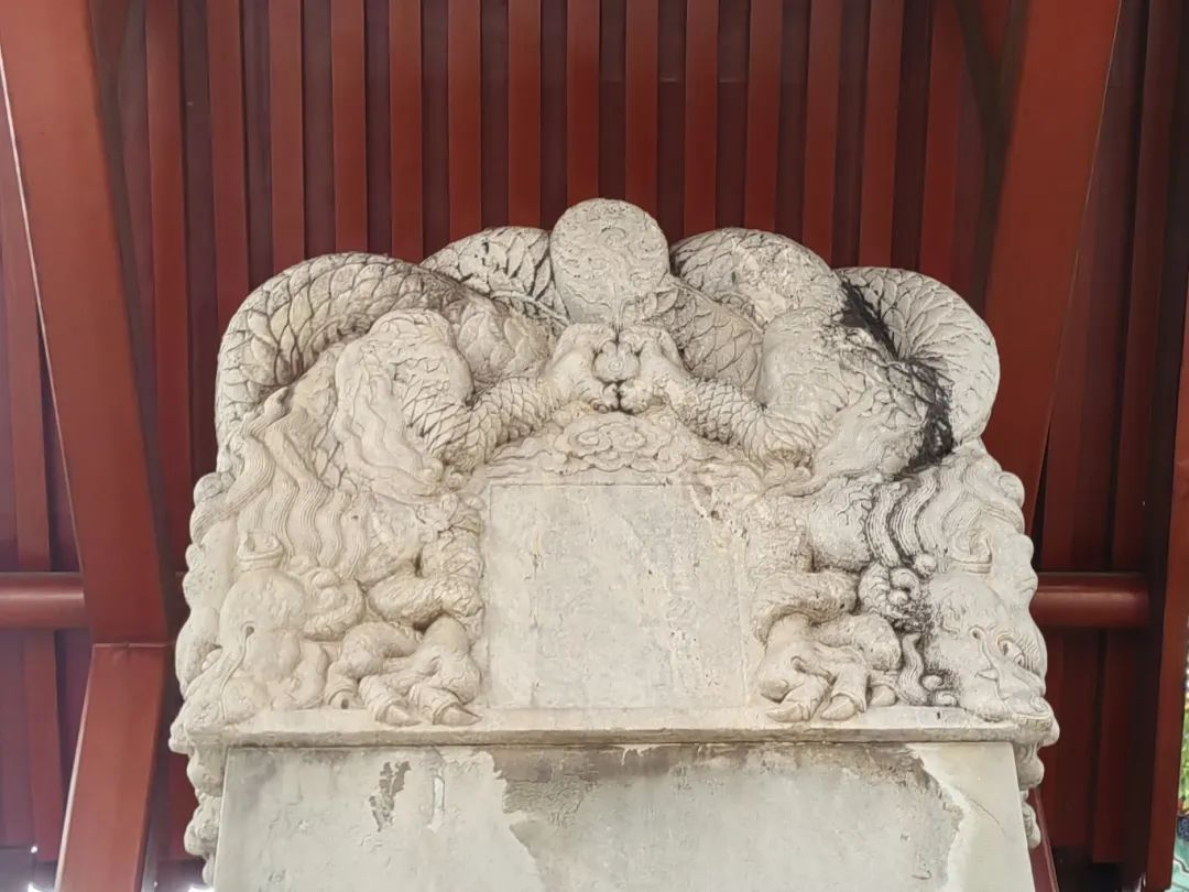 除了一进院内两座明代古碑,法海寺二进院西侧还陈列着一座螭首方座碑,碑首都能看到螭龙的形象。