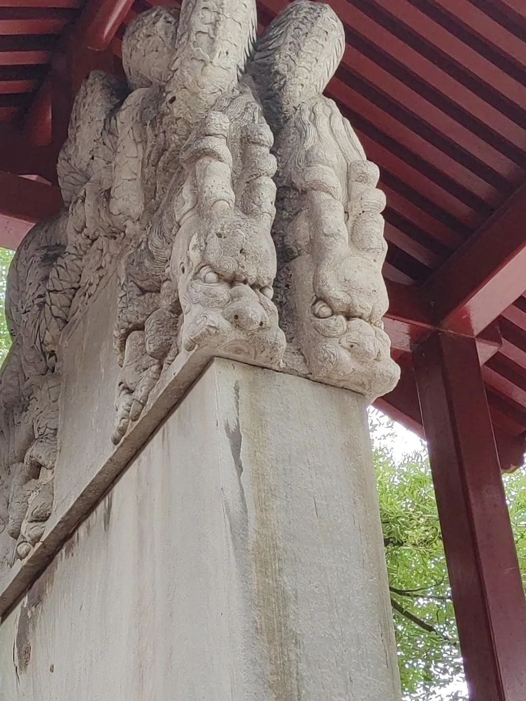 上次我们介绍了碑下龟趺(fū)——赑屃(bì xì),“螭(chī)首龟趺”是古代碑碣的传统装饰形制,由雕刻螭龙纹饰的碑额和龟形碑座组成。古人关于“龙九子”的说法各异,有些地方也将碑首上的螭龙列为九子之一,称作“螭虎”,也说叫“负屃”。