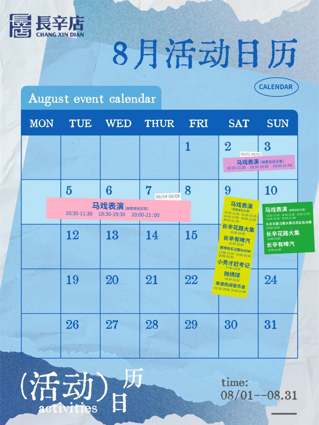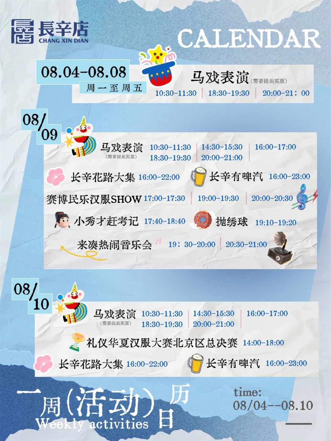 当夏日的晚风裹挟着马戏的欢呼、民乐的电音、汉服的飘逸撞入长辛店,8月9日至10日,长辛店国潮时尚街区将化身“京西文化宇宙”,用八大主题活动承包你的夏日夜生活。
