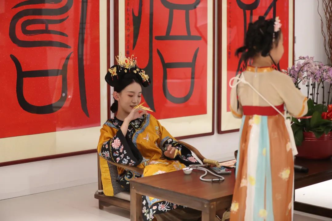 集齐印章的小朋友最后会去到吉福公社寻找隐藏彩蛋“皇后娘娘”,在露天舞台观看汉服演出!当演员用现代台词演绎经典角色时,孩子们笑得前仰后合;当小玩家被授予“状元”称号时,全场家长都举起了手机,可比任何玩具都值得!