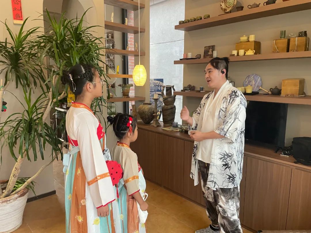 小朋友需要收集8个印章,每个印章都藏在不同的店铺里!在“诗”铺,背出一句带“花”的诗词;在“酒”铺,和酒仙行诗歌“酒令”;在“花”铺,用鲜花拼出“长辛店”三个字……最有趣的是“茶”铺,店员会突然考你:“茶圣陆羽写过哪本书?”答对才能盖章!