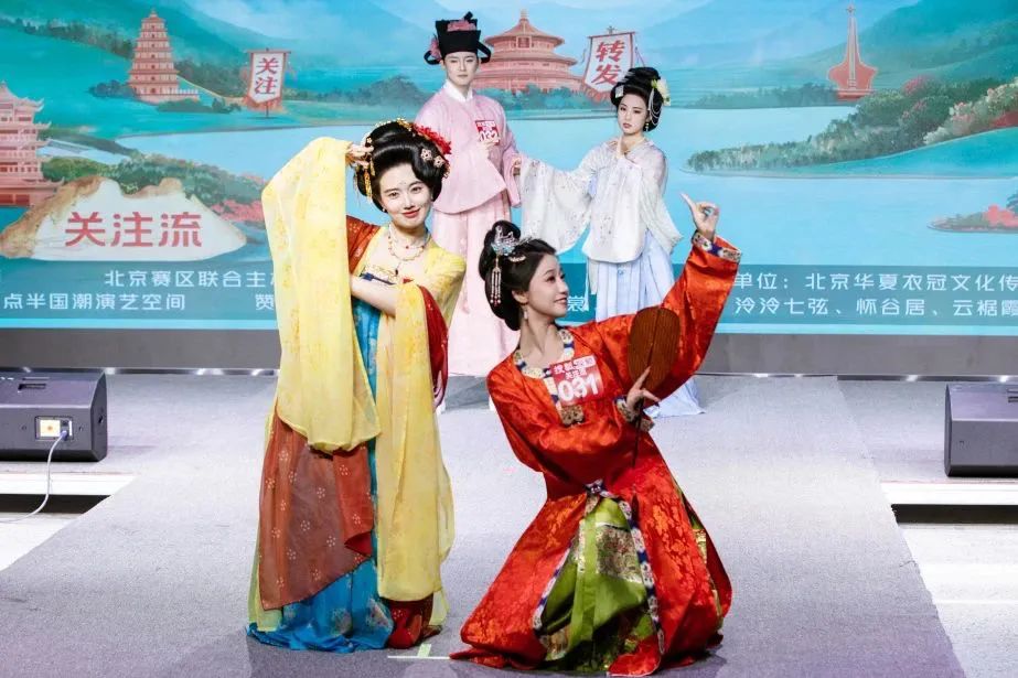 有选手穿着唐代“石榴裙”,裙摆绣着宝相花,发髻插着金步摇;有选手穿着明代“定陵出土”款,霞帔上的补子针脚细密;传统与未来,在这一刻完美交融!