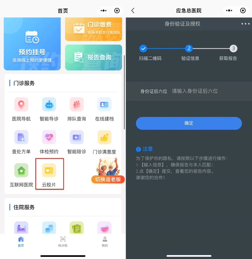 即刻打开“应急总医院”微信小程序,亲身体验“云胶片”服务带来的高效与便利!让创新科技为您的健康之路保驾护航,享受更贴心、更智能的医疗服务!