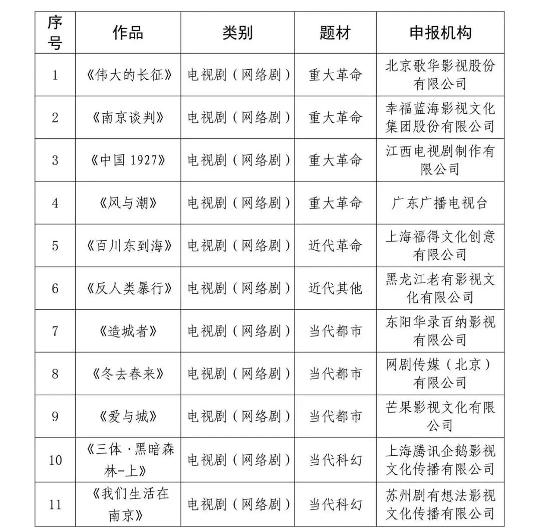 8月5日,国家广播电视总局公示2025年电视剧引导扶持专项资金项目拟扶持项目名单,北京市广电局组织推荐的4部作品入选,含3部电视剧《伟大的长征》《冬去春来》《喀什古城》和1部网络电影《商陆,佳方》,占扶持总数16部的四分之一,位居全国第一。