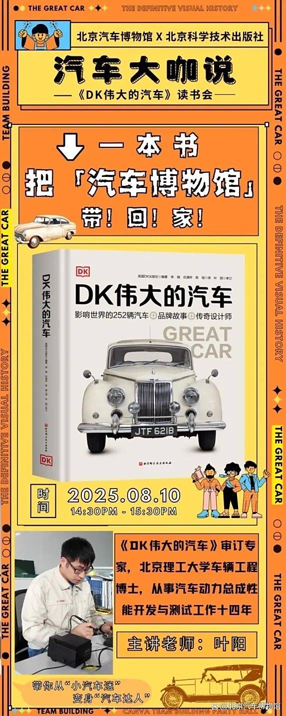 “汽车有意思”青少年科学节——汽车大咖说《DK伟大的汽车》读书会等你来参与,我们在北京汽车博物馆与你不见不散,场地内座椅有限,先到先得哦。