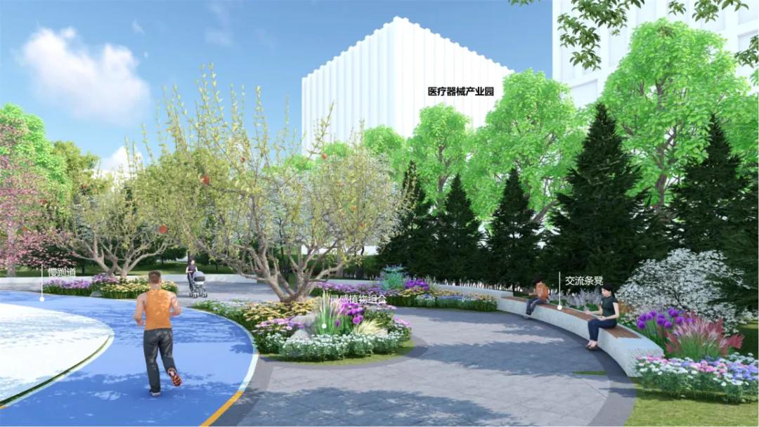 项目以公园为载体,高品质提升生命健康社区生态环境:配置多元活动场地及休憩设施,满足园区人才日常休闲与身心调适的综合需求;通过多层次植被系统,持续净化空气、调节微气候,塑造清新宜人的园区微环境。自然与产业和谐共生,构建可亲近、可体验的理想生态空间,全面增强社区生态品质与宜居吸引力。
