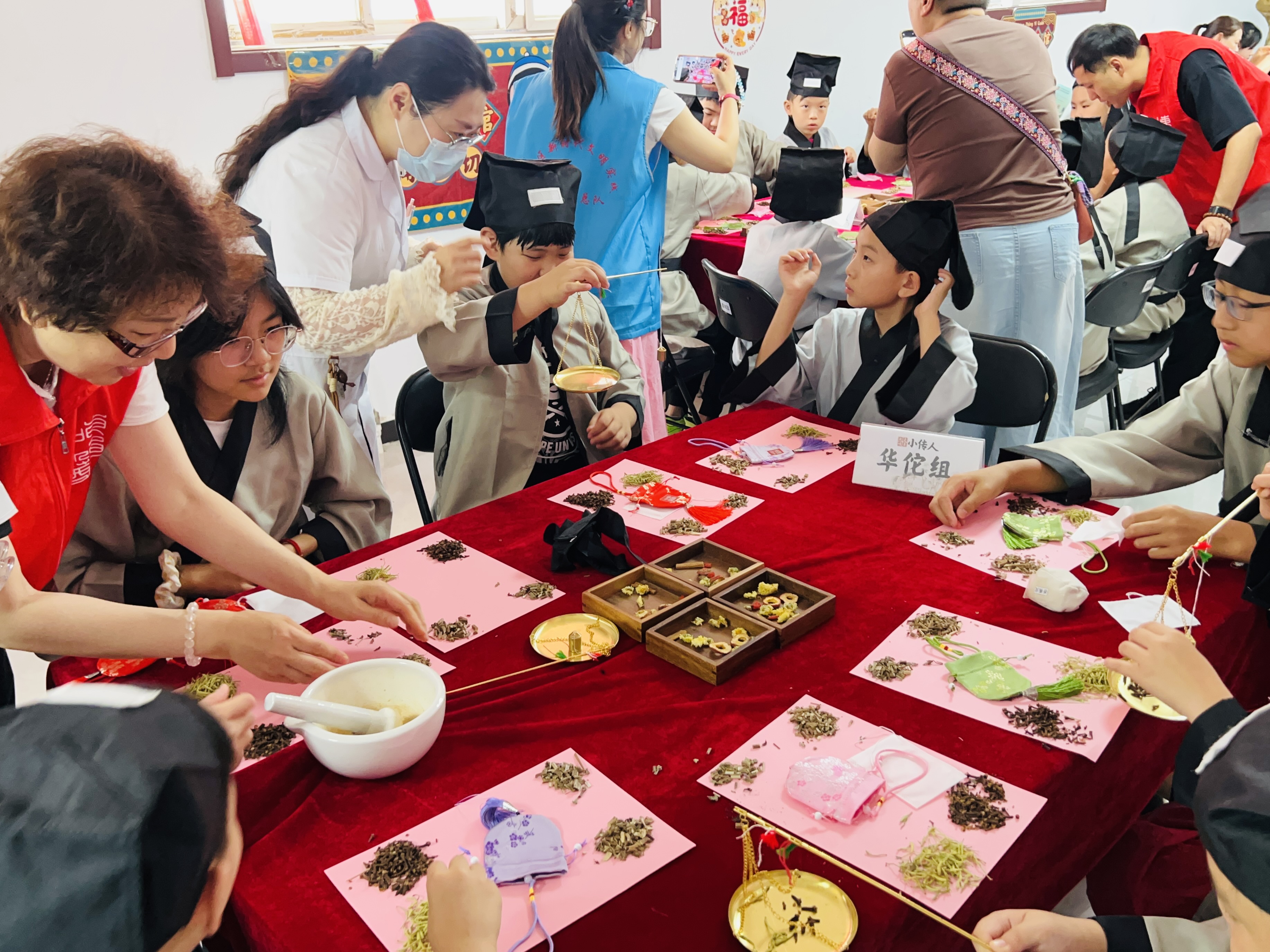 在中医药传统文化体验板块,“嘉顺‘医’夏,中医初体验”让孩子们化身“小小中医师”,亲手触摸艾草、薄荷等常见保健药材,在辨识中感受中医药的温度,学习简易养生小知识;“嘉顺‘药’夏,香囊小报行”更热闹:医生志愿者手把手带领孩子们研磨药材、制作驱蚊香囊,再用画笔绘制中医药小报,让中医文化在一笔一画的实践中生根发芽。