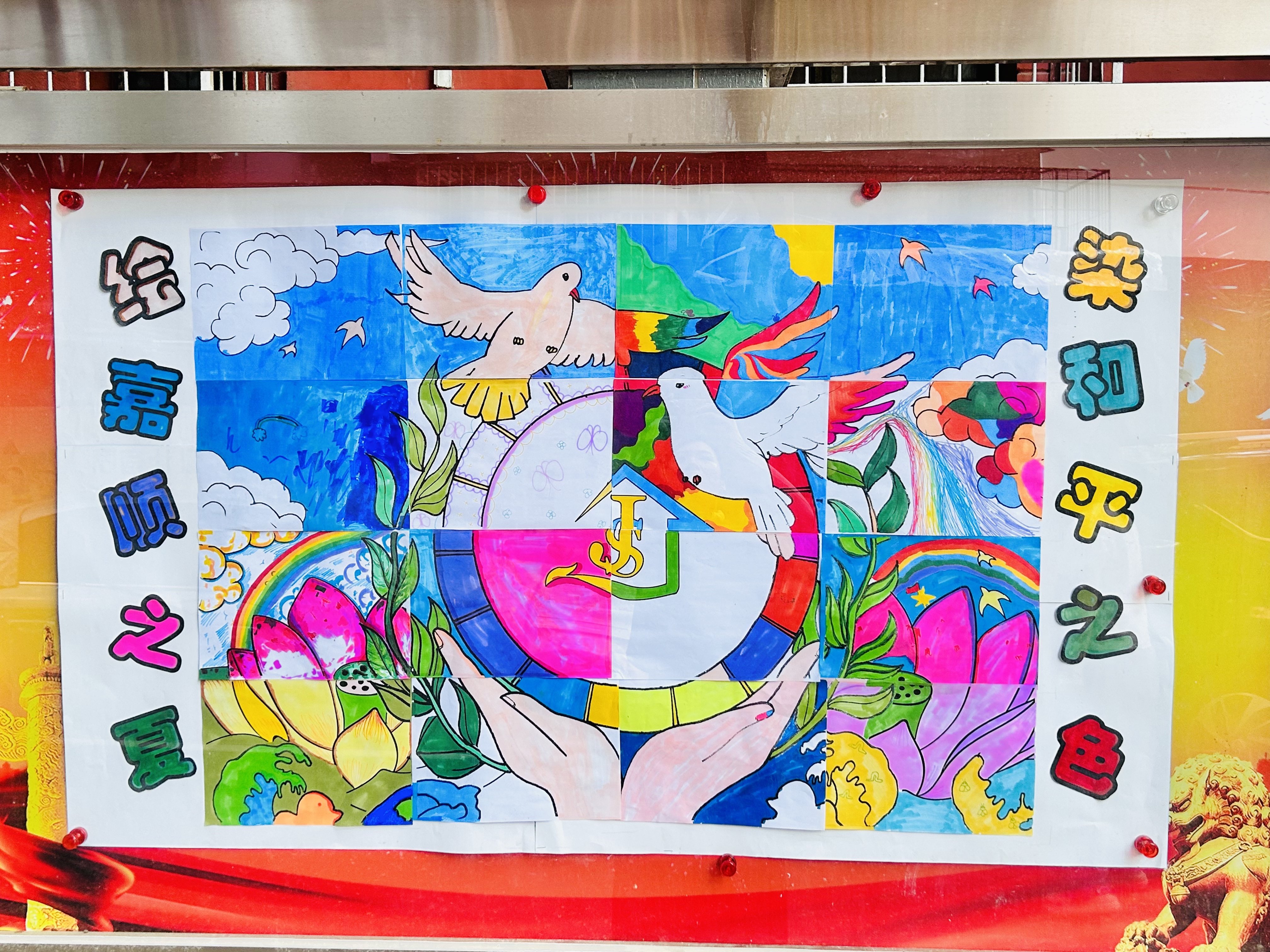 最含深意的莫过于“嘉顺‘绘’夏,和平色彩行”主题活动。为纪念世界反法西斯战争胜利80周年,16名孩子以笔为媒,共绘一幅和平长卷:和平鸽振翅捎去无硝烟的祝福,托举的双手盛满邻里守护幸福的温暖;嘉顺园社区的轮廓、党徽与五角星的亮色,将爱党爱国情怀揉进家园图景;莲花绽放、草木生长,每一笔都是童真写给世界的和平信。