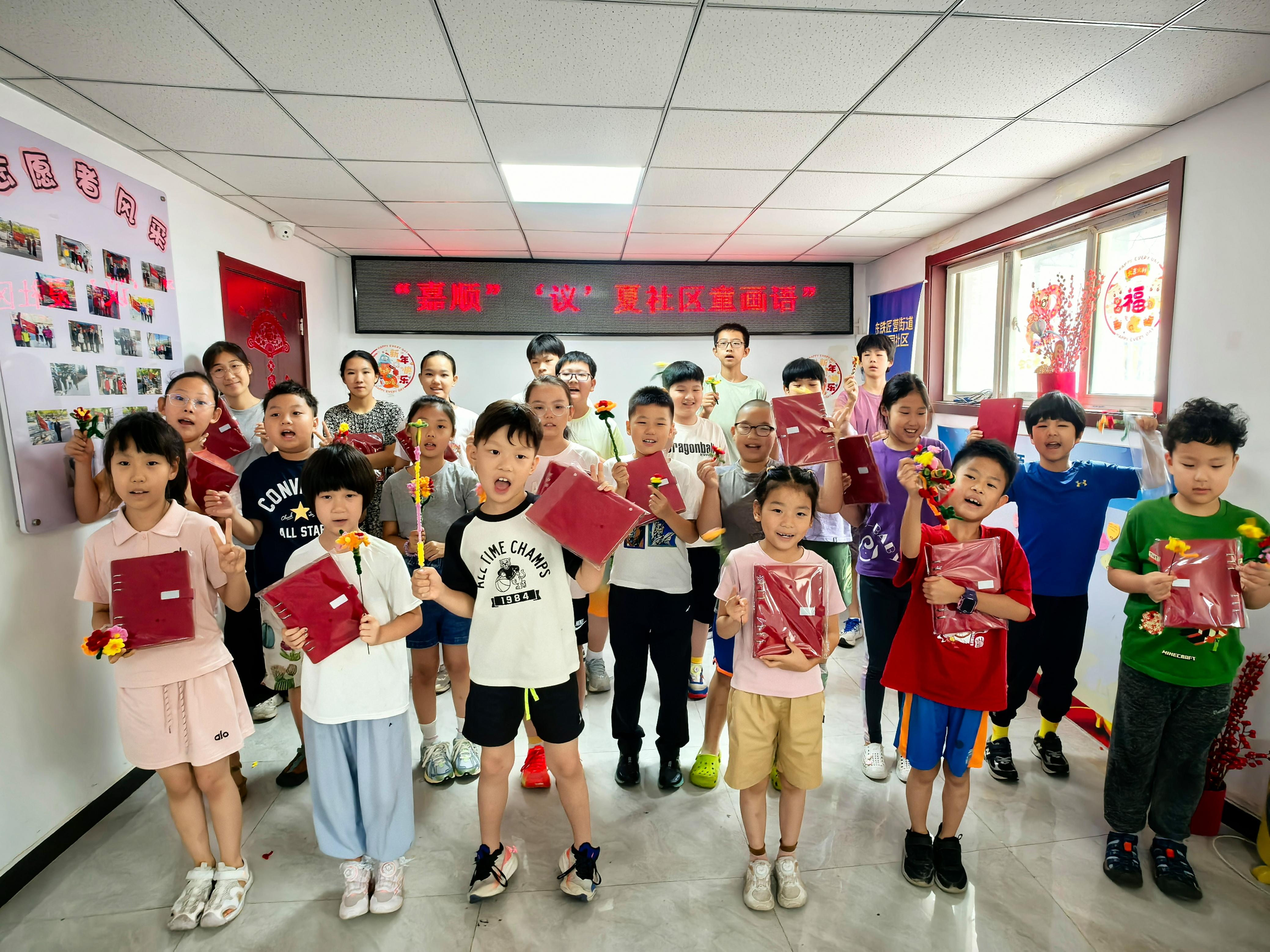 美育与思政的融合同样精彩:“嘉顺‘队’夏,玻璃绘初心”中,孩子们用颜料在玻璃上勾勒鲜花图案,表达对群团党组织的热爱与向往。“嘉顺‘心’夏,杯垫绘成长”活动里,马赛克与心理知识相遇,在创作中引导孩子们用色彩表达思绪和创意,同时渗透心理调适与团队协作的理念,让成长不止于技艺。“嘉顺‘议’夏,社区童画语”则让孩子们以画代语,共商社区小事,培养青少年参与基层社区治理的积极性,稚嫩的笔触变成了社区治理的“金点子”。