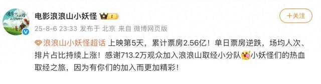 8月2日,原班主创打造的动画电影《浪浪山小妖怪》上映,讲述了发生在“平行时空”的全新故事:小猪妖、蛤蟆精、黄鼠狼精、猩猩怪四只无名小妖假扮唐僧师徒,前往西天取经的荒诞喜剧之旅。