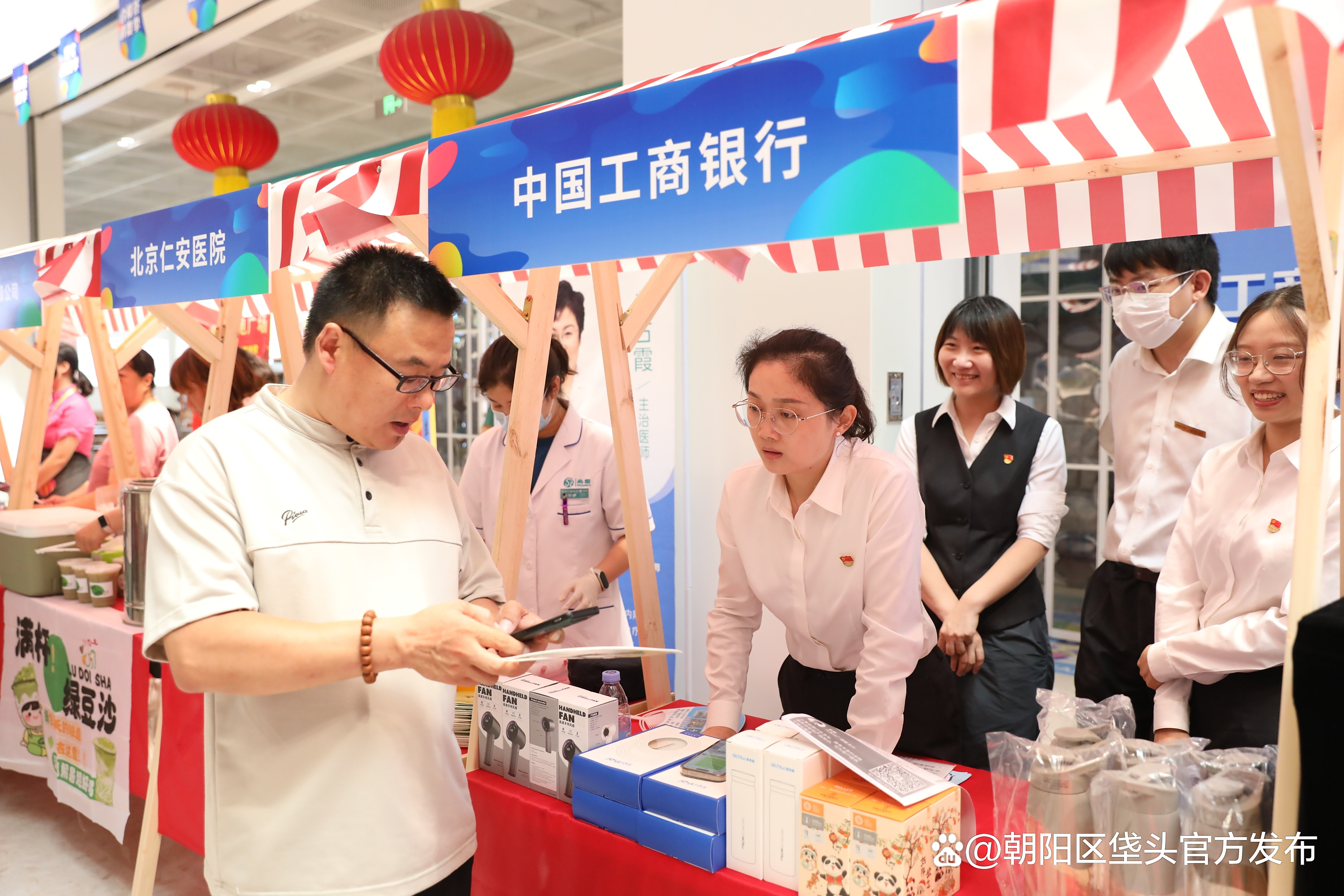 启动仪式现场同步开展市集活动,由中国工商银行、北控国际会都、华氢时代(北京)生物科技有限公司、北京工美集团技术中心、北京玉尊源玉雕艺术有限公司、北京仁安医院、北京市新华书店垡头书店、北京顺财阁商贸有限公司、北京奥莱荟商业管理有限公司等多个企业以商品、展板等形式进行展销展示,为居民提供餐饮、文创、旅游等多元消费场景及优惠。各展位前人头攒动,居民们在体验互动中感受到消费季的惠民暖意。