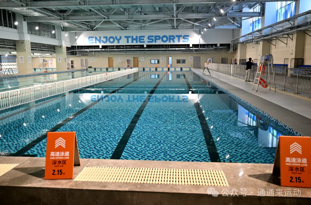 位于体育馆地下一层,包含1片50米泳池、8条泳道;1片25米泳池、3条泳道。