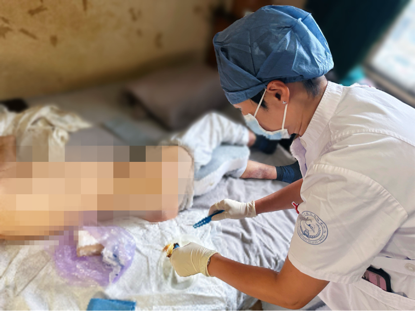 患者是一位刚做完髋关节手术一周的高龄老人,卧床在家,无法自行前往医院换药。考虑到术后伤口恢复关键期,新村卫生服务中心医护团队决定按时上门服务,不因天气推迟。