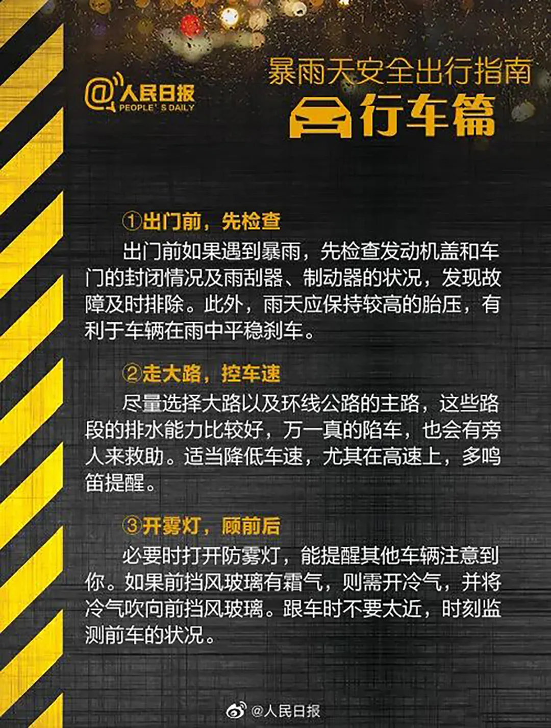 3.驾驶人员应当注意道路积水和交通阻塞,确保行车安全。