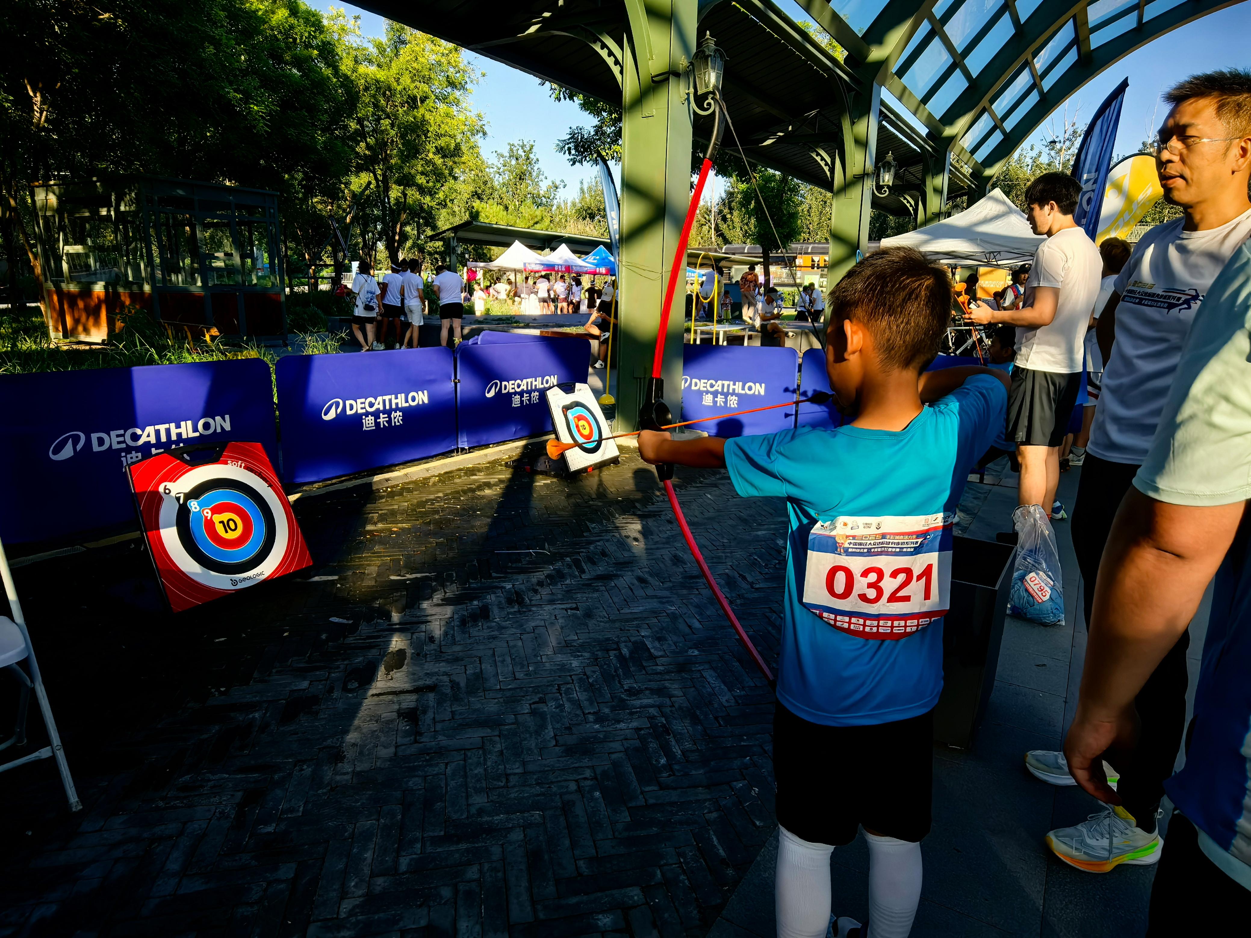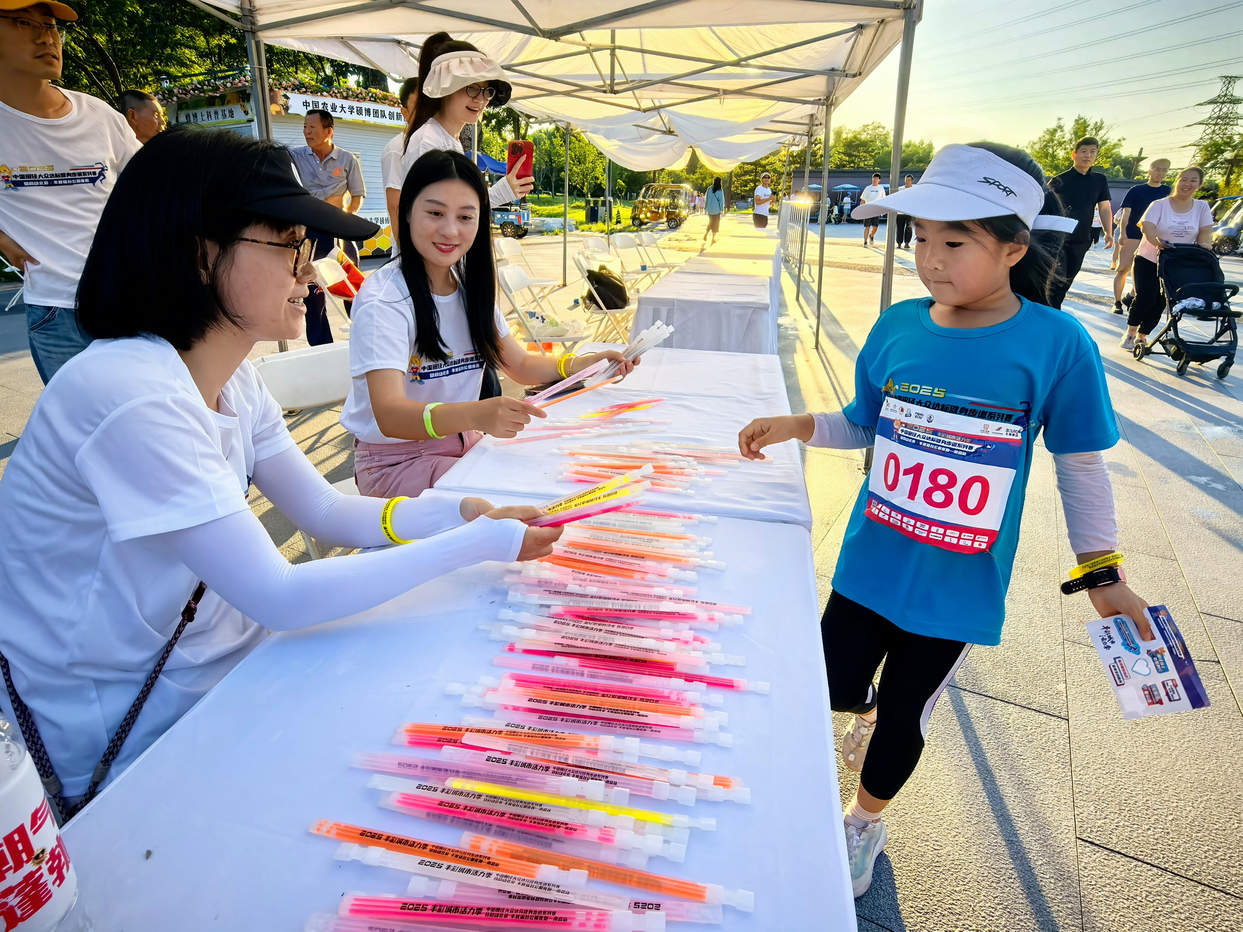 赛场外的“体育+娱乐”盛宴同样热闹。记者在现场了解到,作为“2025丰彩城市活力季”九大赛事活动之一,本届夜跑活动继续秉承“体育+娱乐”的办赛理念,精心打造了集运动、休闲、趣味于一体的多元化参赛体验。运动能量场活动体验区内带来极富趣味的多元体验,孩子们拉弓享受趣味射箭,短距离投掷简易篮球;1907站台潮玩市集的灯光渐次亮起,科技互动摊位前小型飞行器绕过一个又一个圆圈引得小朋友们争相尝试,旁边的美食摊位飘出阵阵甜香,实现“逛吃遛娃”一站式满足。赛道两侧的趣味打卡点前,家长和孩子手持荧光棒、并肩按下印章,每一步都成了可收藏的欢乐印记。免费露营区里,不少家庭已早早铺开野餐垫,三明治和水果摆成小拼盘,等待完赛后尽享野餐与悠闲时光。