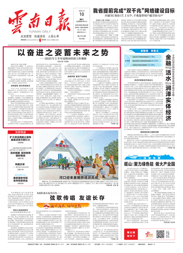 2025年的日历翻到一半,昆明市以铿锵步履写下序章:经济运行稳中有进,产业结构优化升级,新兴产业拔节生长,招商引资硕果丰盈。从2022年GDP增速3.0%,到今年上半年增速4.4%,每一个百分点的抬升,皆是逆风执炬、化浪为梯的硬仗。