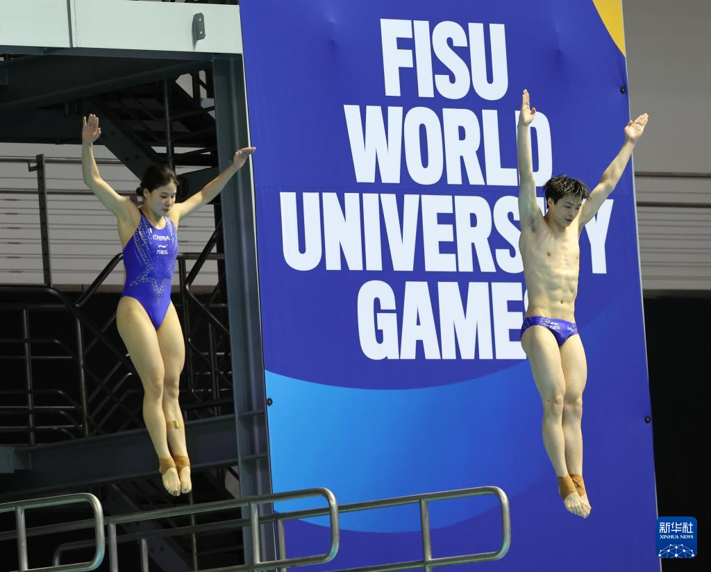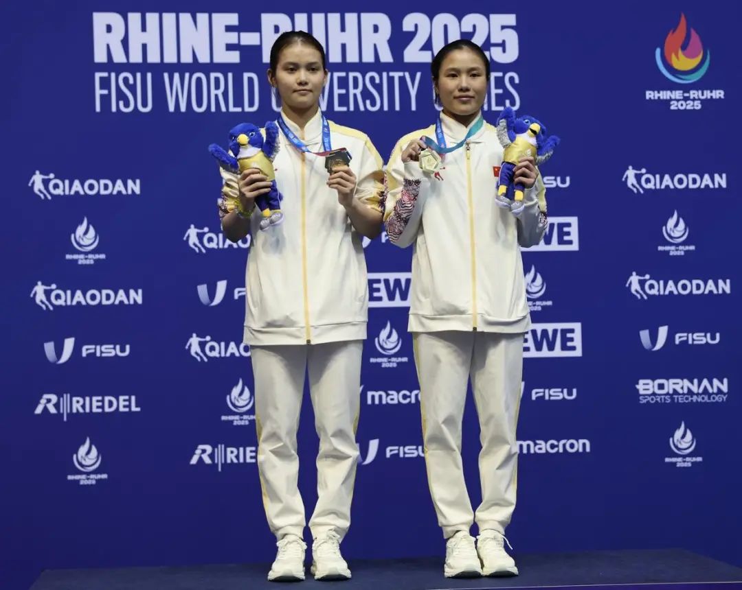 7月17日,在2025年莱茵-鲁尔世界大学生夏季运动会跳水女子双人10米台比赛中,来自北京体育大学的何妍伟搭档卢为夺获得冠军。这是中国代表团在本届大运会上夺得的首枚金牌。