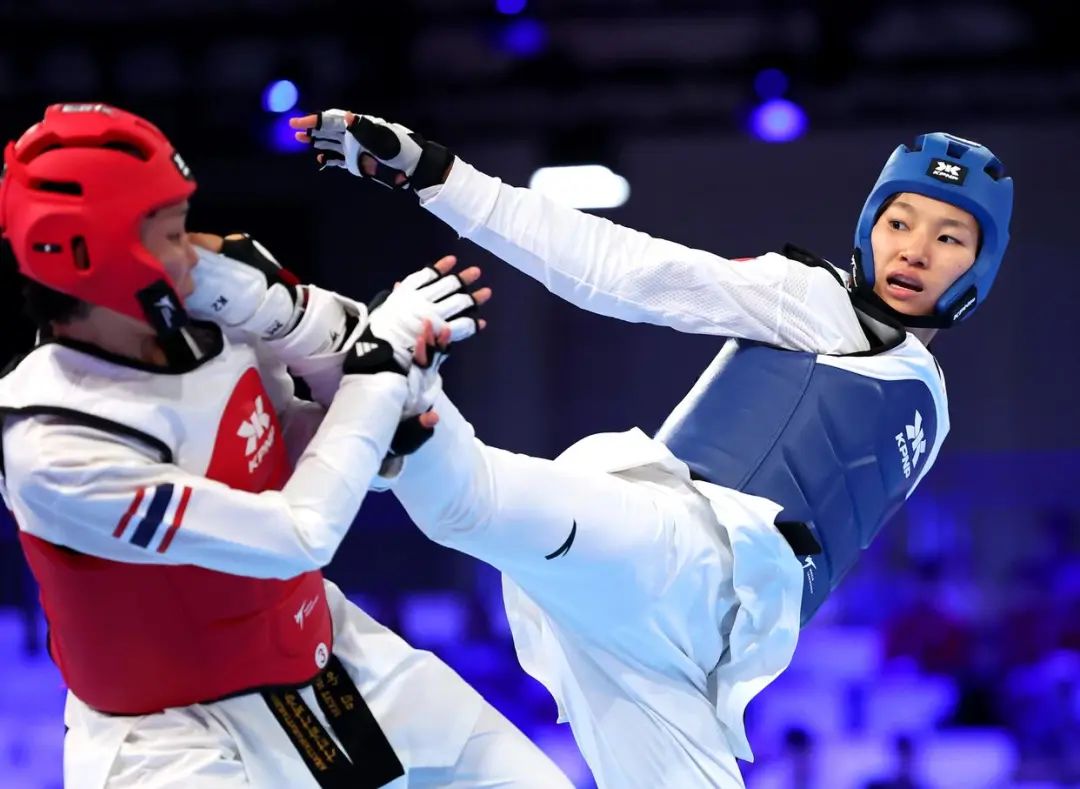 7月22日,在2025年德国莱茵-鲁尔世界大学生夏季运动会跆拳道女子53公斤级决赛中,来自北京体育大学的郭清2比1战胜泰国选手宗功拉达那瓦达那,夺得冠军。