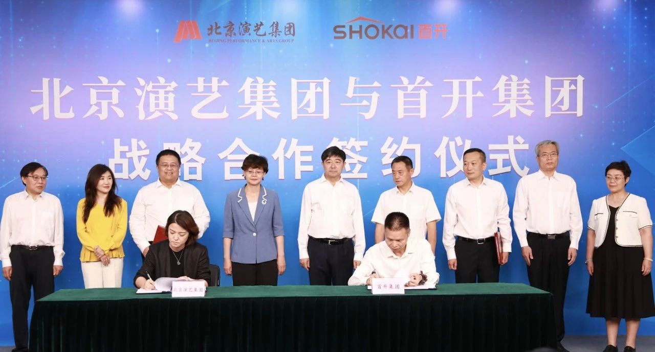 北京演艺集团副总经理、工会主席、职工董事武晓南与首开集团党委副书记吴智分别代表双方签约。