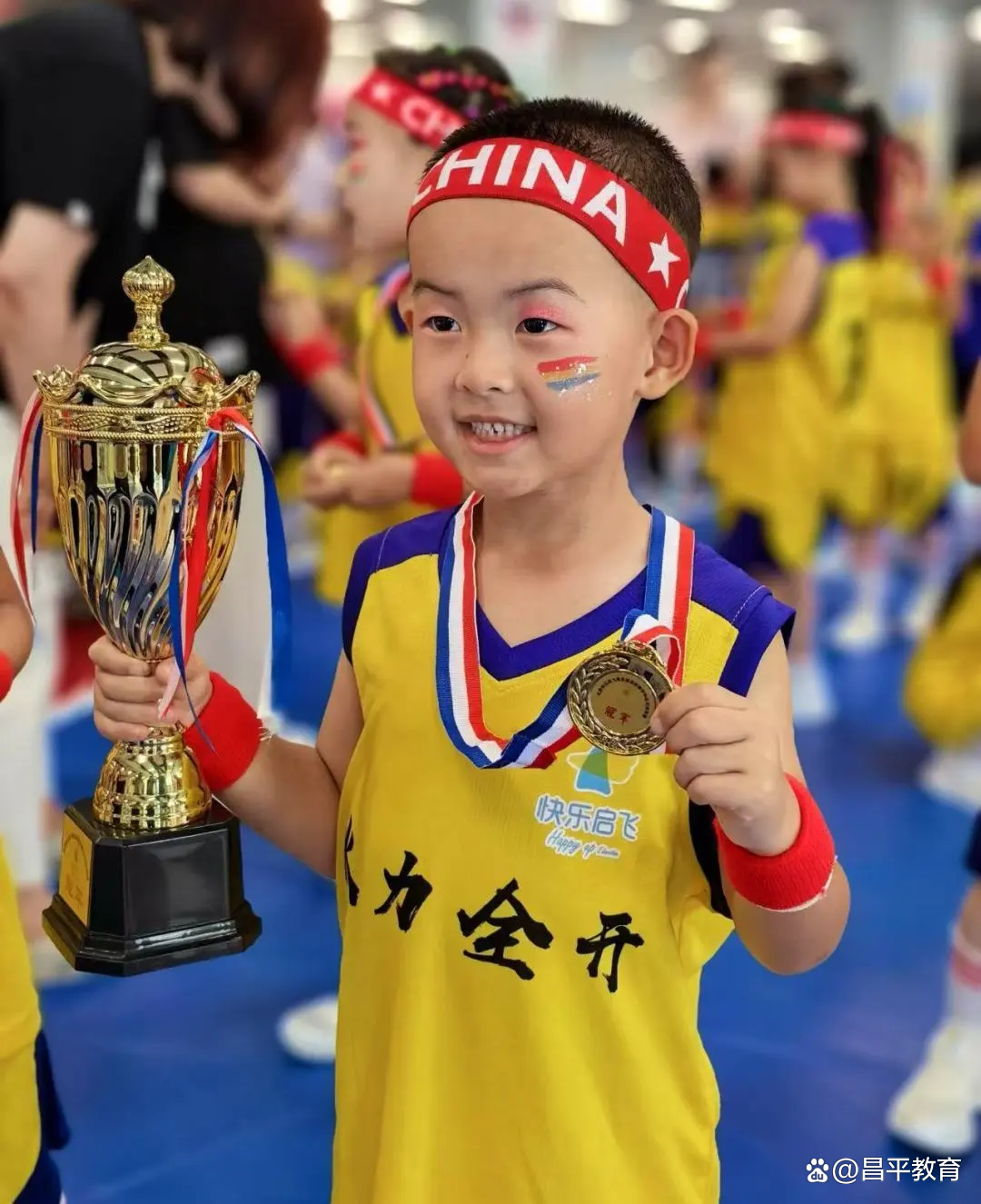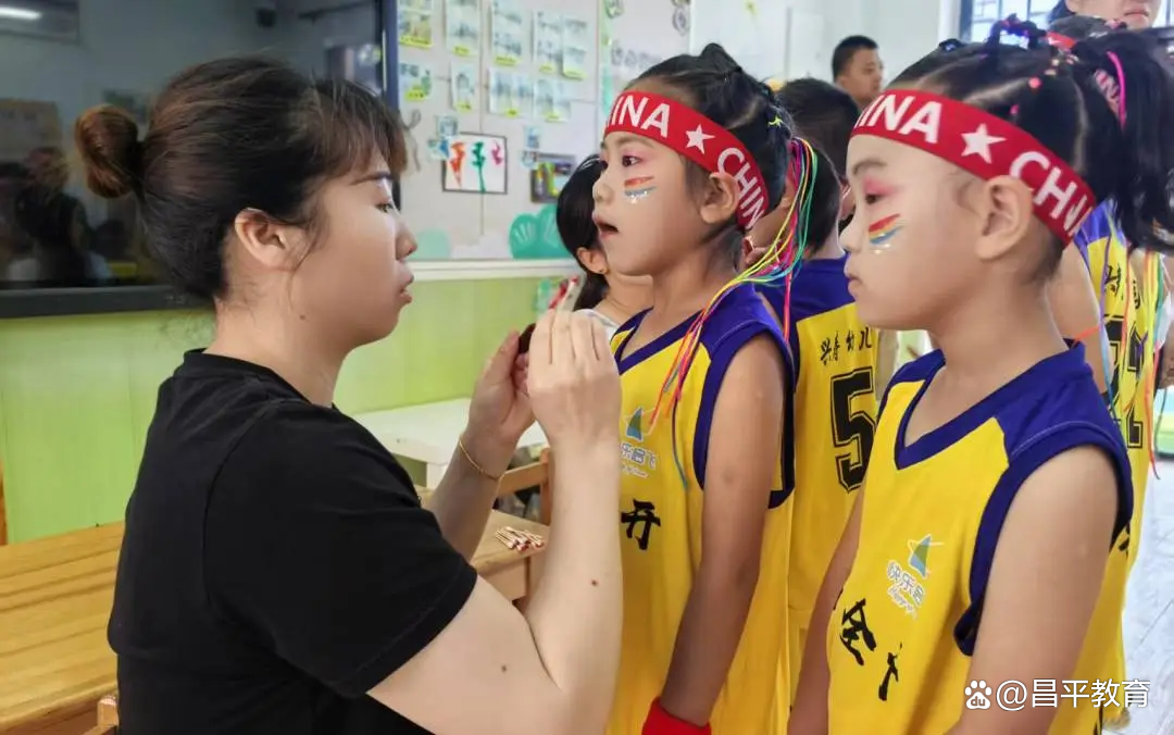 老师们手持彩妆笔,精心为小选手们梳妆打扮——粉嫩的腮红、亮晶晶的眼影,搭配上整齐的运动服,瞬间化身活力满满的赛场精灵。一切准备就绪,蓄势待发的小选手们昂首挺胸,自信的笑容比阳光更加灿烂!