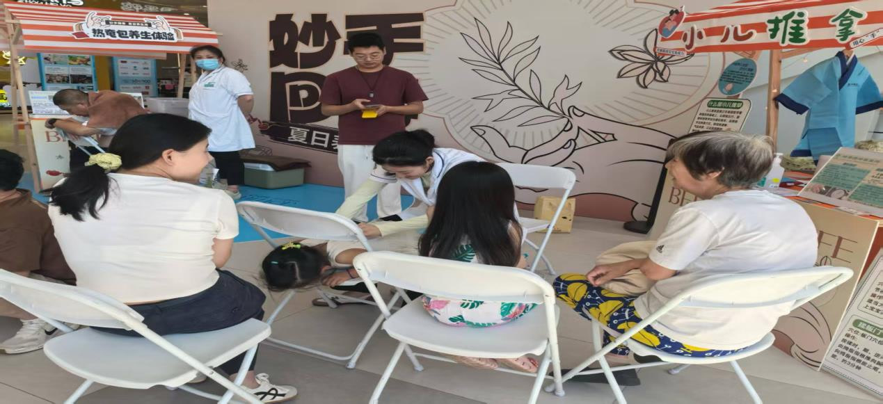 通过中医辩证给与相应项目体验,按摩、耳穴贴敷、热奄包等非药物疗法体验。活动现场交织着儿童体验推拿的欢声笑语与老人咨询健康的专注场景,市民在轻松氛围中感受着"看得见、摸得着"的中医魅力。
