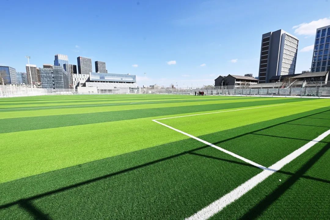 与传统的红色跑道不同,蓝色跑道在视觉上给人以清新、明亮的感觉,仿佛是一道流动的蓝色波浪,与绿色的足球场交相辉映,成为副中心又一道“蓝绿交织”的风景线。