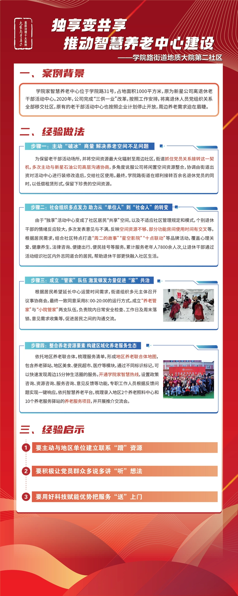 独享变共享 推动智慧养老中心建设——学院路街道地质大院第二社区