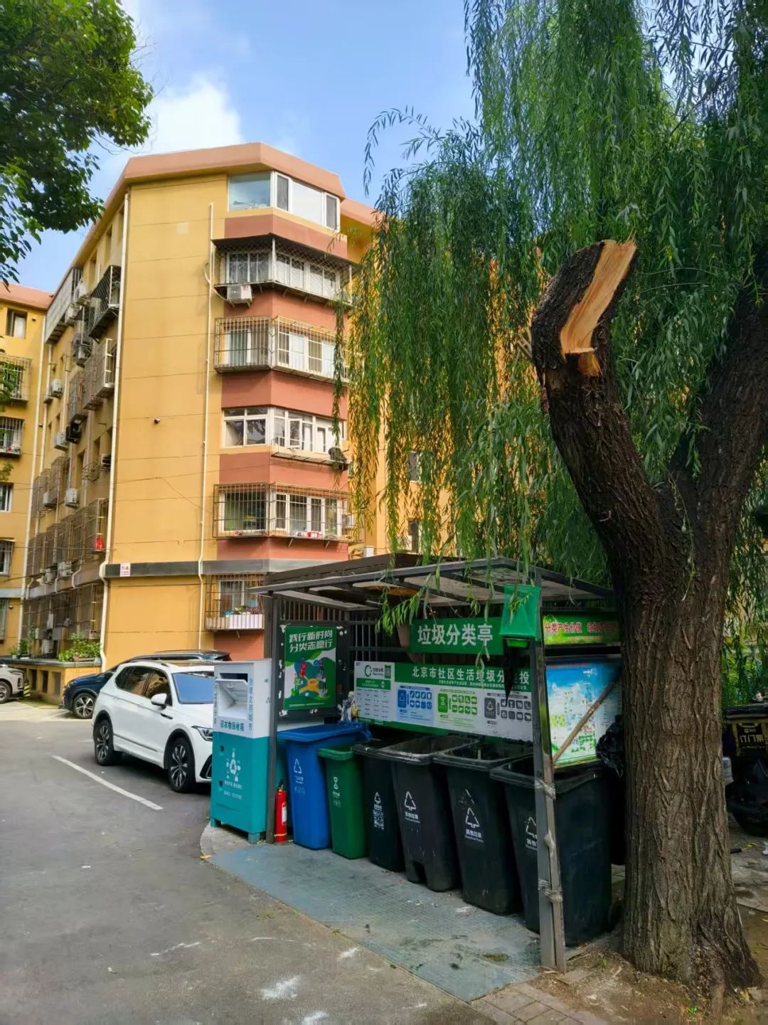 胜古庄社区皇姑坟小区5号楼东侧,垃圾桶旁的大树突然断枝,社区第一时间联动物业,工作人员火速赶赴现场处置,及时消除坠枝伤人隐患。