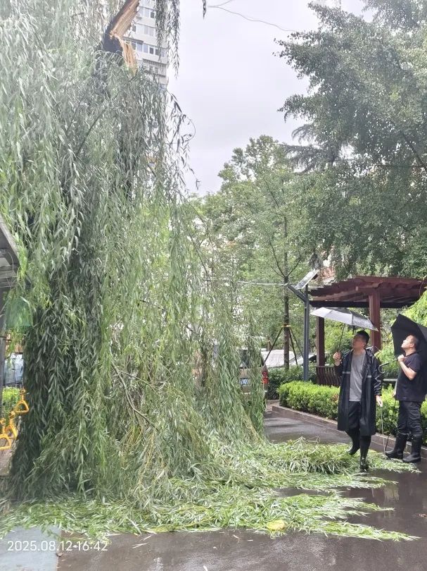 和平西苑社区小黄庄路也出现树枝折断情况,街道迅速上报绿化队,专业人员不仅高效清理断枝,更将路面彻底清扫干净,确保道路恢复畅通,保障行人与车辆通行安全。