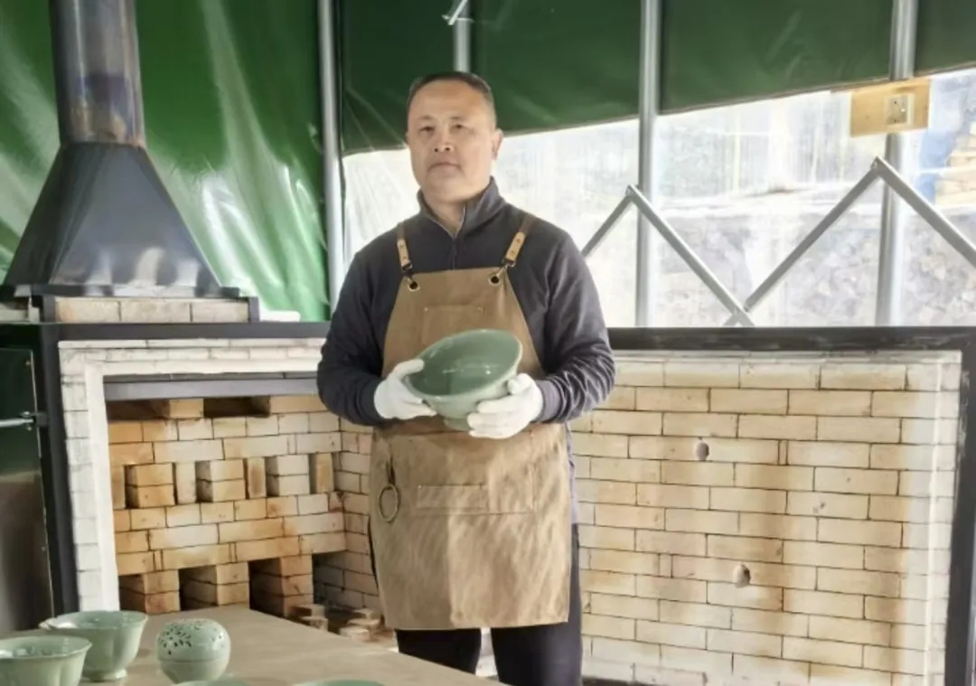 盛涛1969年7月出生在临安县,这里曾是古代越窑的中心产区,是秘色瓷的故乡。1987 年,陕西法门寺地宫出土了 14 件有文字记录的秘色瓷,这一重大考古发现如同一声惊雷,揭开了中国陶瓷史上悬而未决的秘色瓷谜底,让沉睡千年的秘色瓷终于得以重见天日。也正是在这一年,盛涛被秘色瓷的魅力深深吸引,他毅然决然地下定决心要 “复活” 失传千年的秘色瓷烧制技艺。