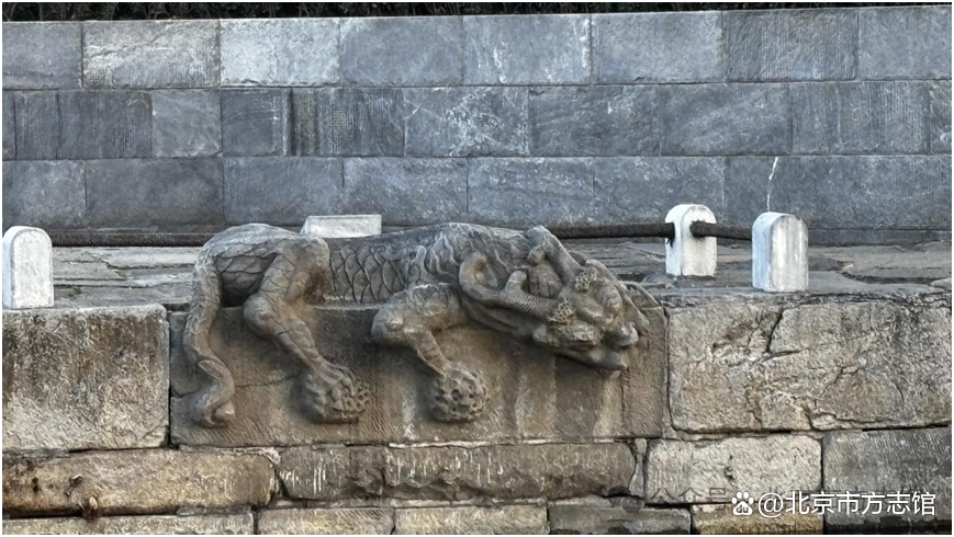 在万宁桥东北岸有1尊元代镇水兽,颌下刻有“至元四年九月”字样,这个精确到月的纪年,恰与元大都营建的时间节点完美契合,成为都城规划的重要物证。