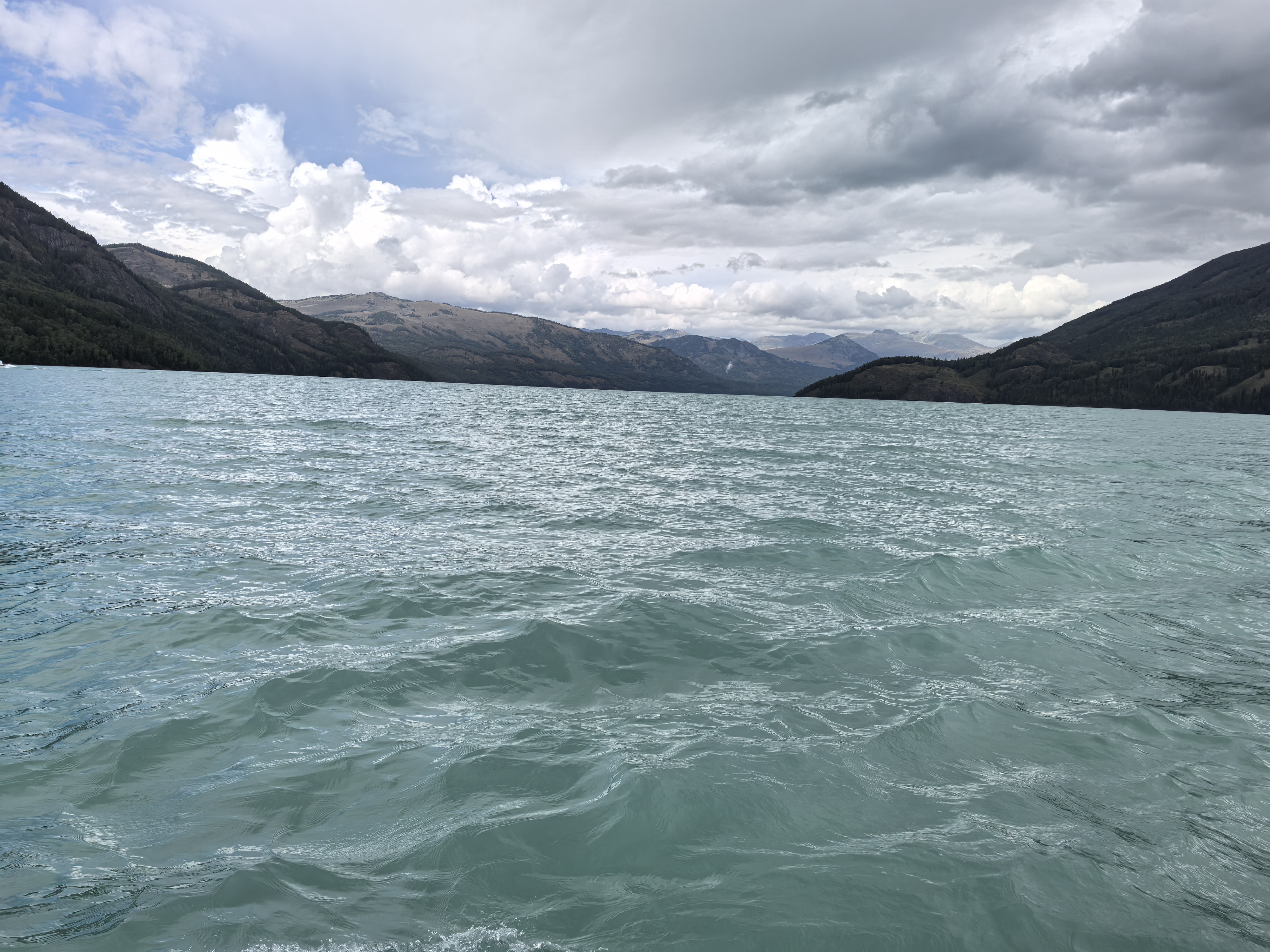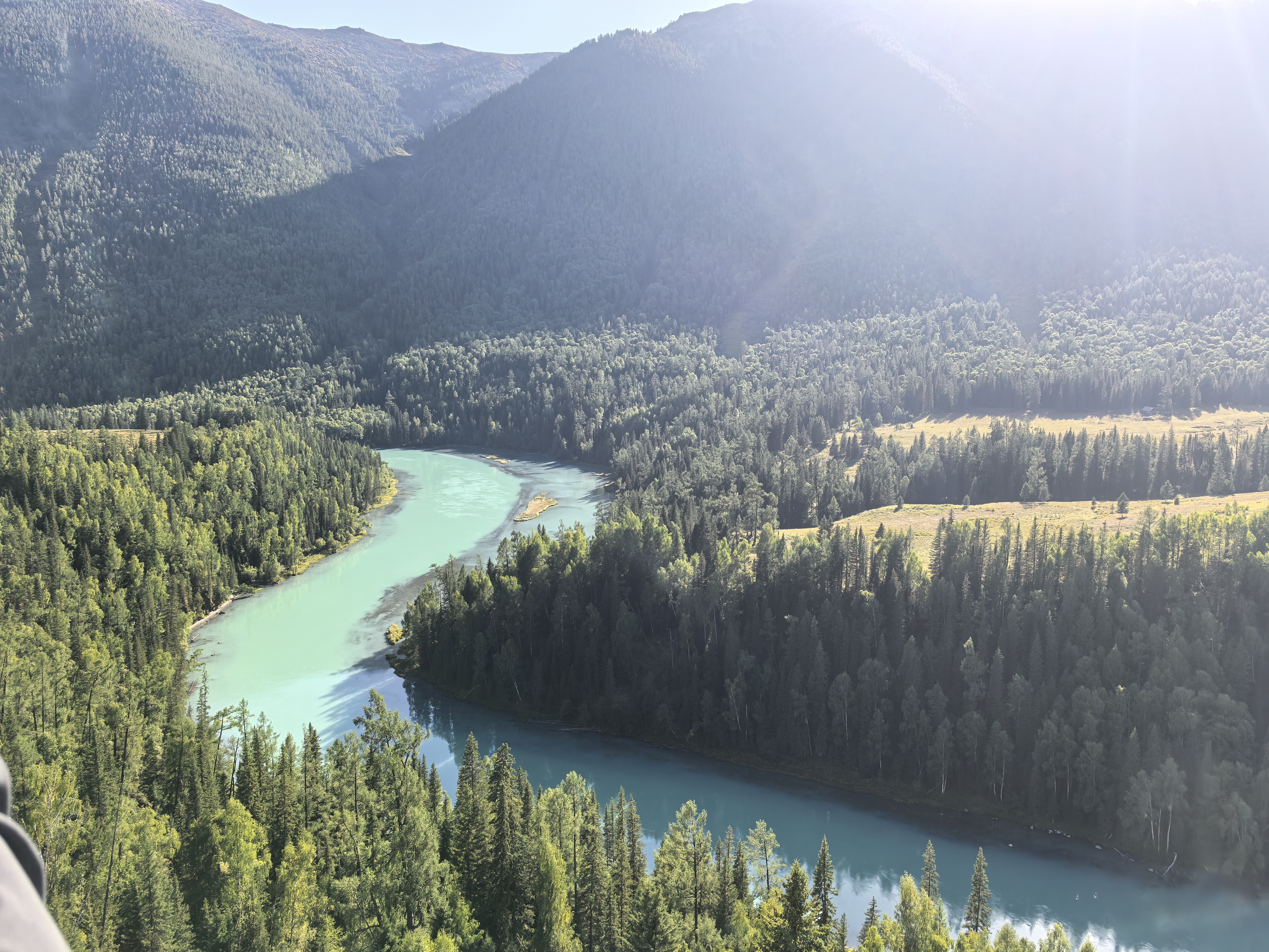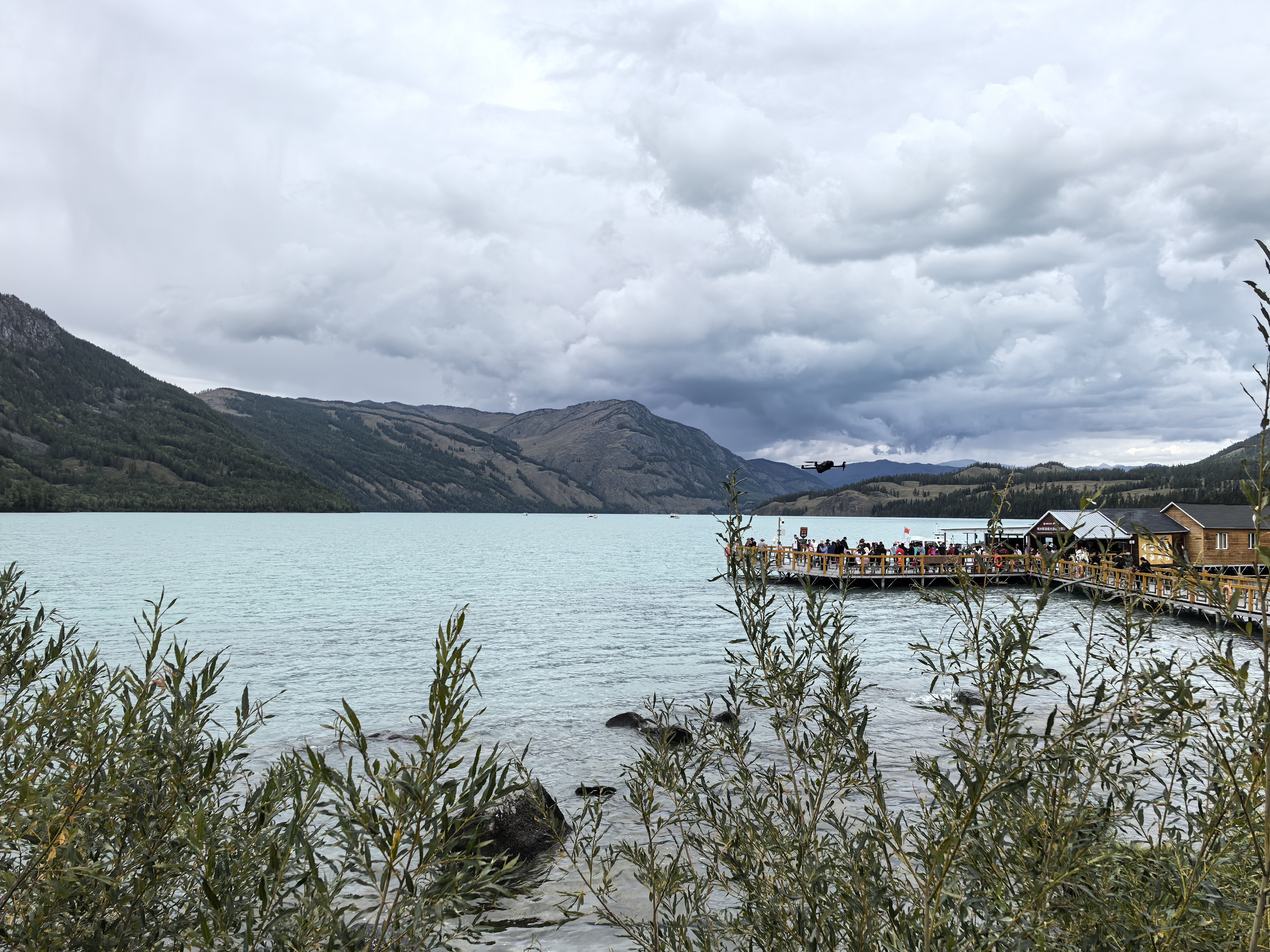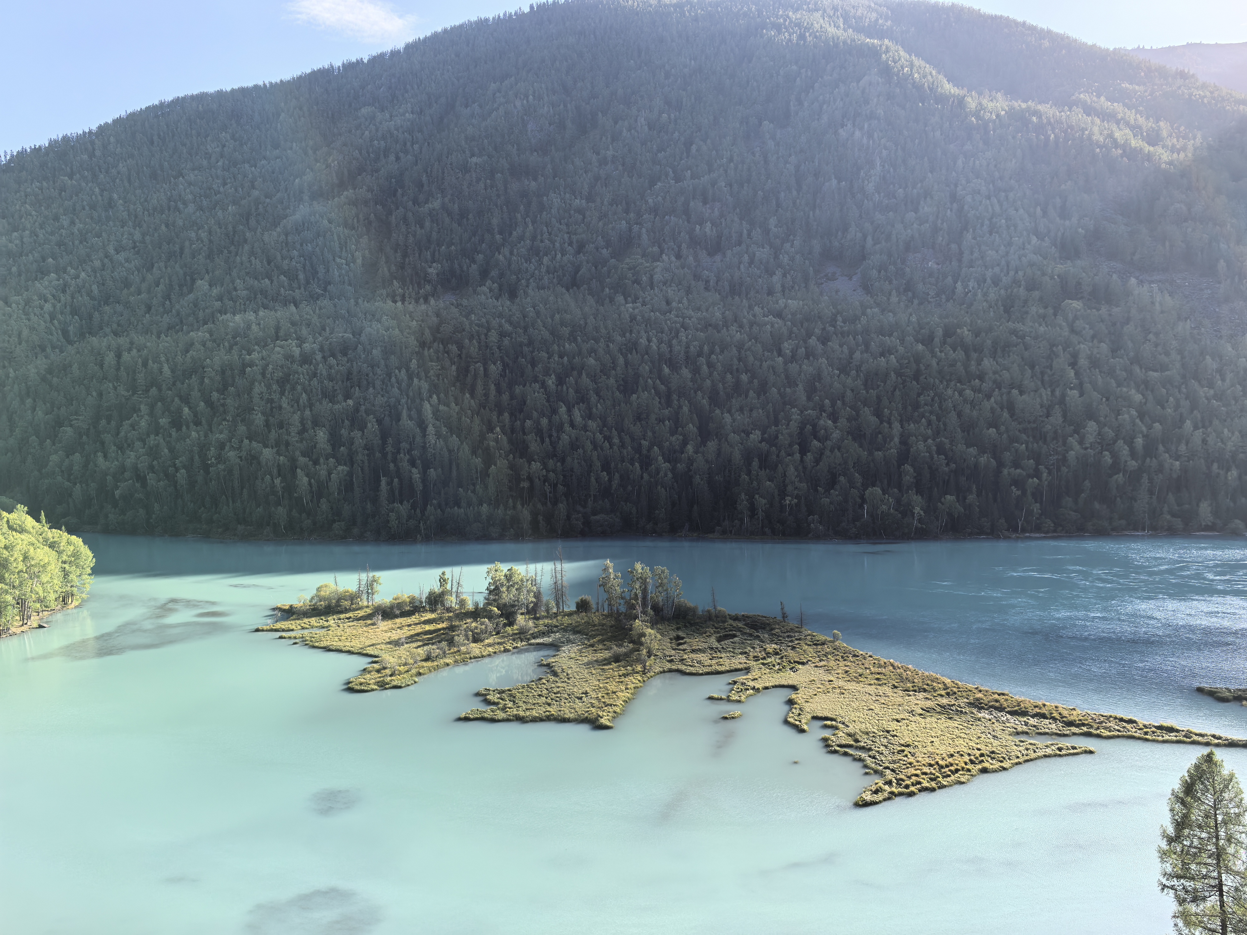 今年喀纳斯湖水,比我看的那次要大一两分。生态好了,水自然就多。山下多设了三个湾景:神仙湾、月亮湾和卧龙湾。有大巴免费逐级换乘观看,很是方便游客。听口音,全国的旅客多,有四川的、广东的、上海的、东北的等等,兴致都很高。还有不少人在玩无人机,拍照。“嗡嗡”,无人机飞得非常稳定,给玩客带来新乐趣。