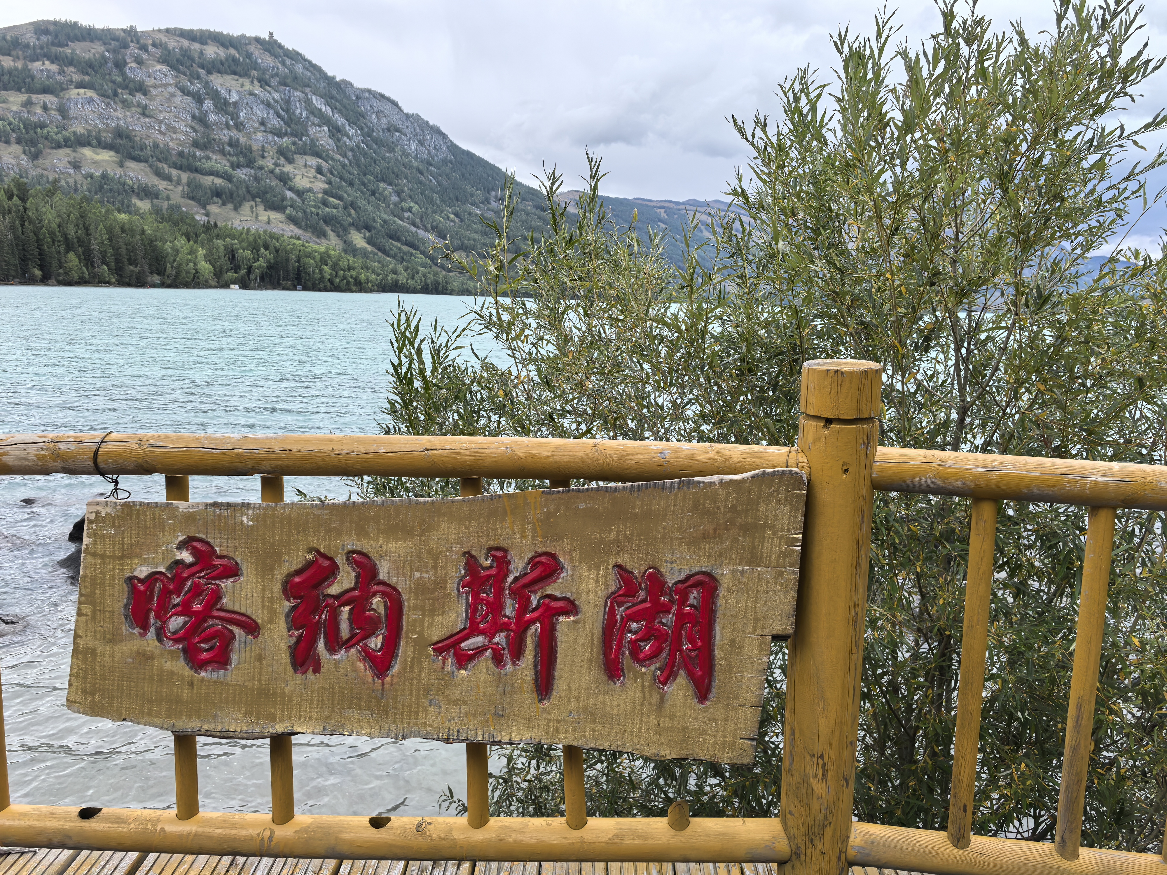 现在的景区流行在前端建一个中心,配备好大巴拉客上山。喀纳斯也如此。我们从昨晚住下的旅游村坐免费公交车,到游客中心。换大巴车,坐行约30公里,到喀纳斯湖。湖水如斯,碧绿如洗。两岸的云杉、油松、白桦高耸入云,确实比20年前高了不少。